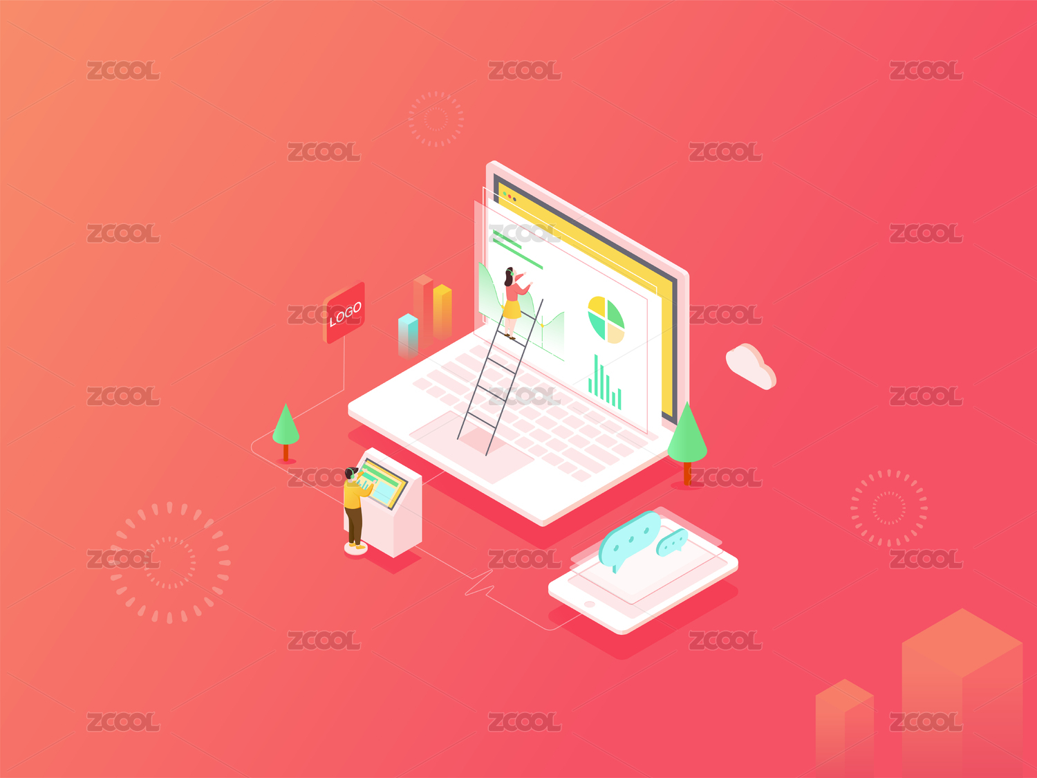 醫(yī)生線上治療疾病炫彩科技風插畫