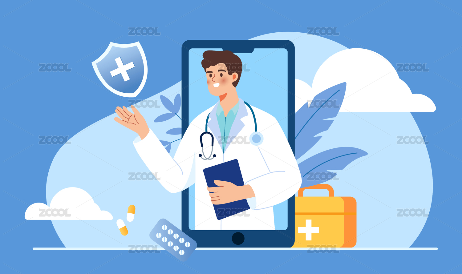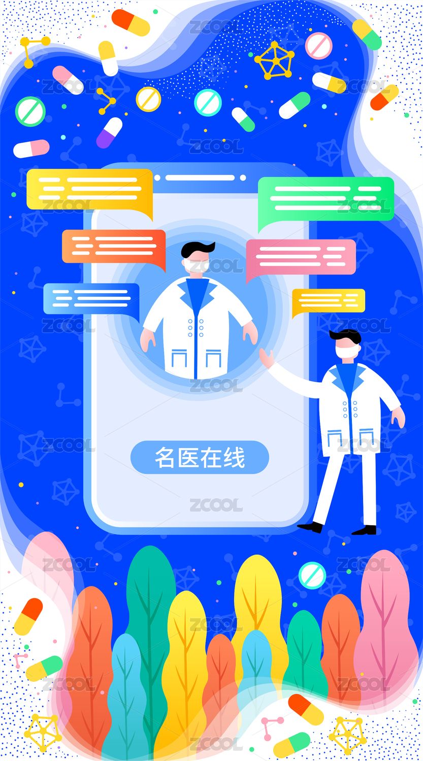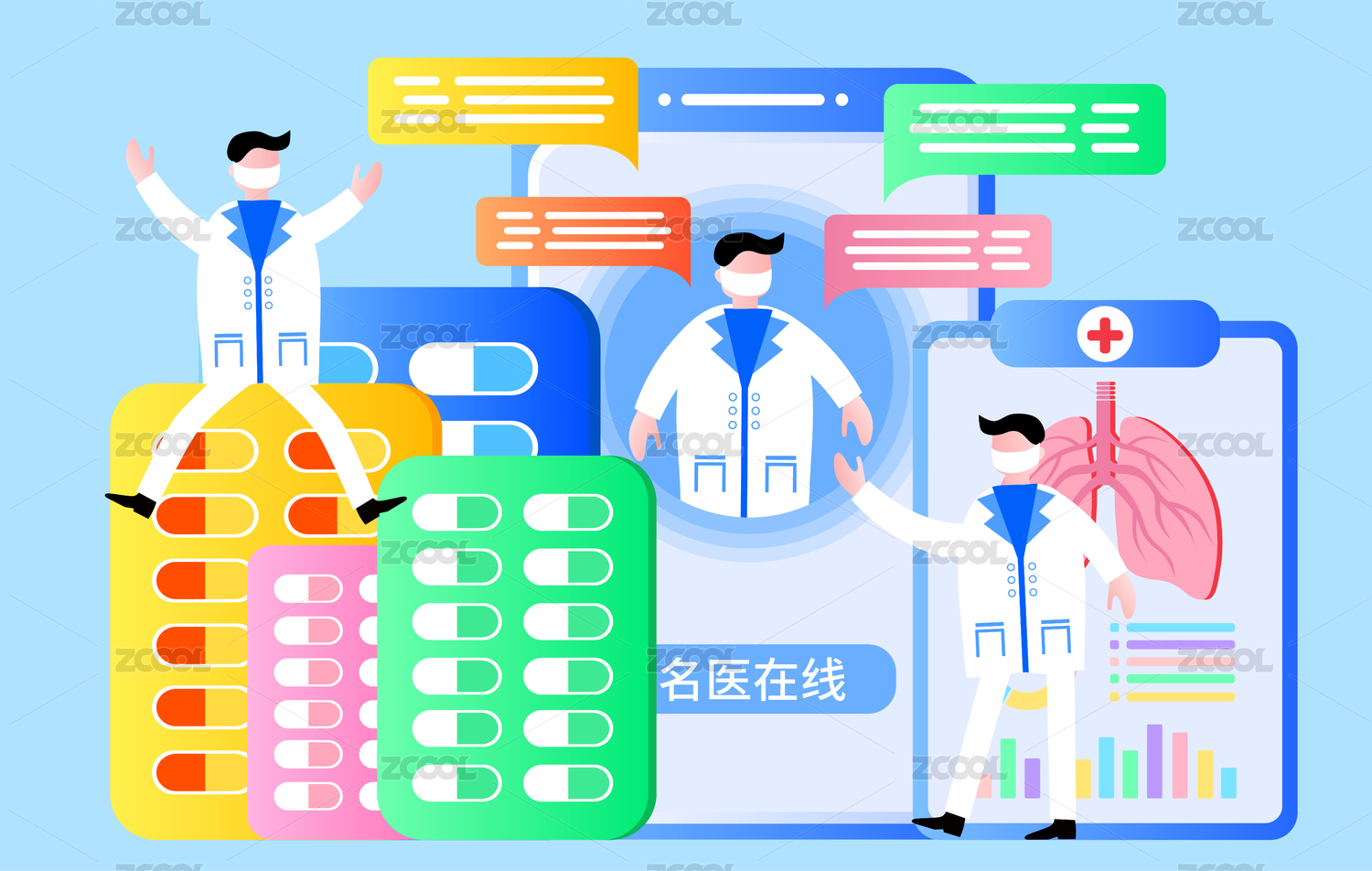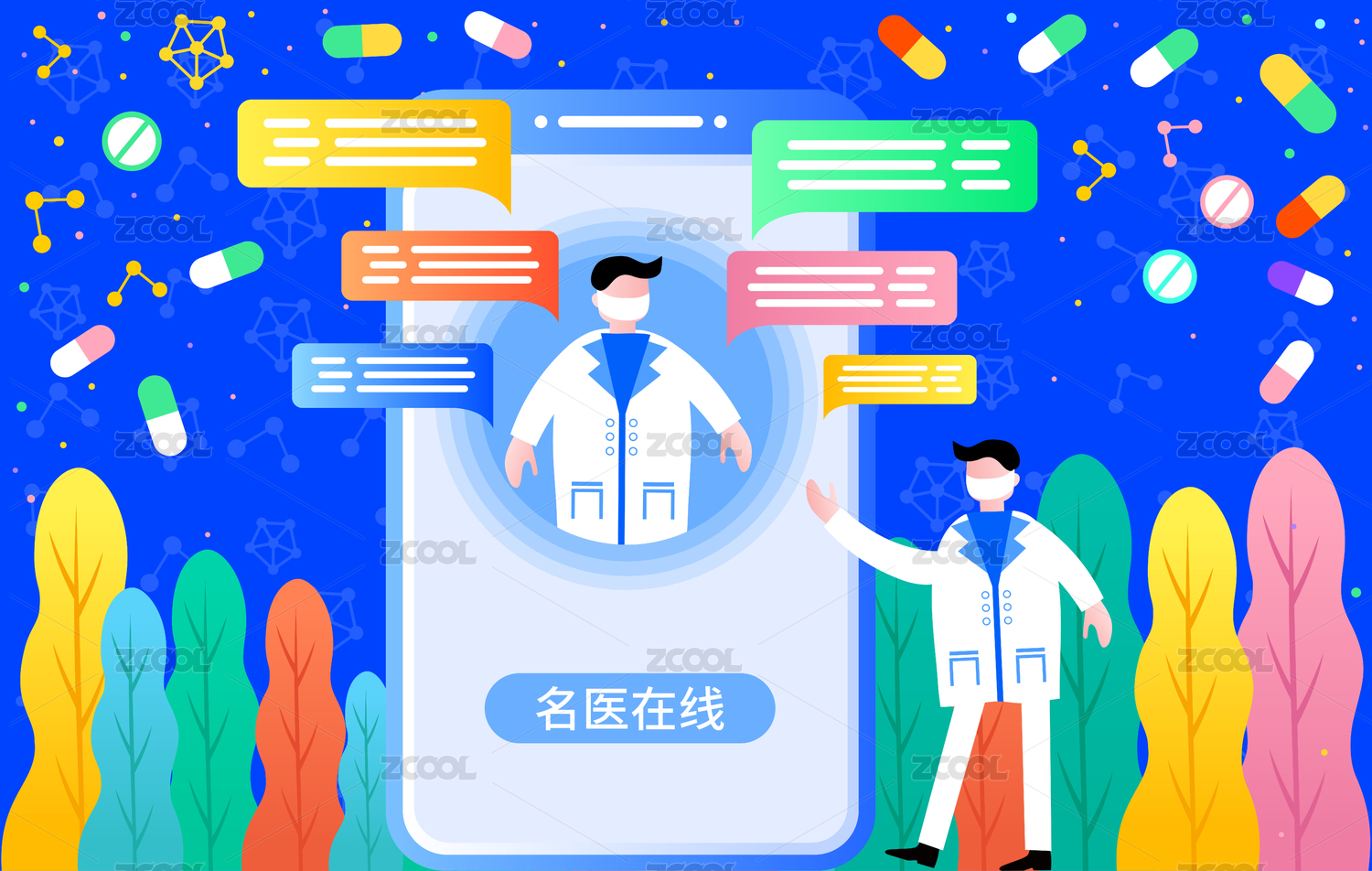 醫(yī)生線上咨詢疾病炫彩科技風插畫