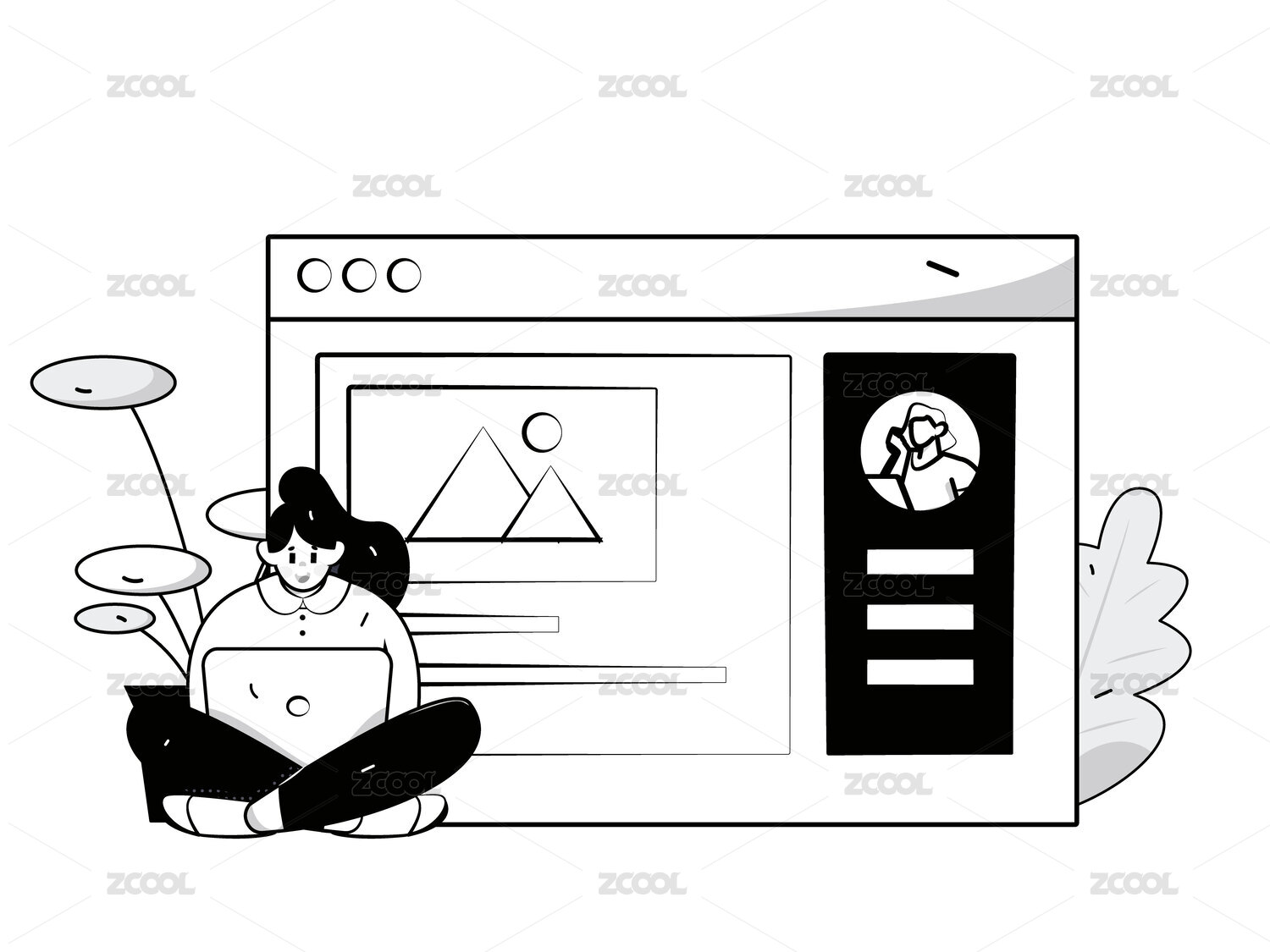 線上購物訂單互聯(lián)網黑白矢量插畫