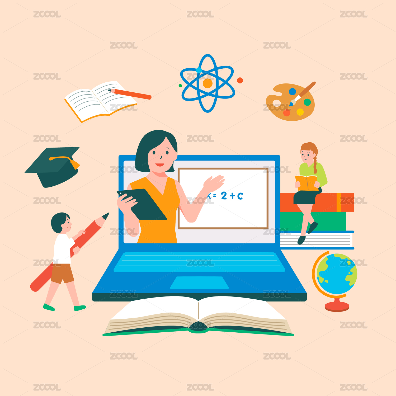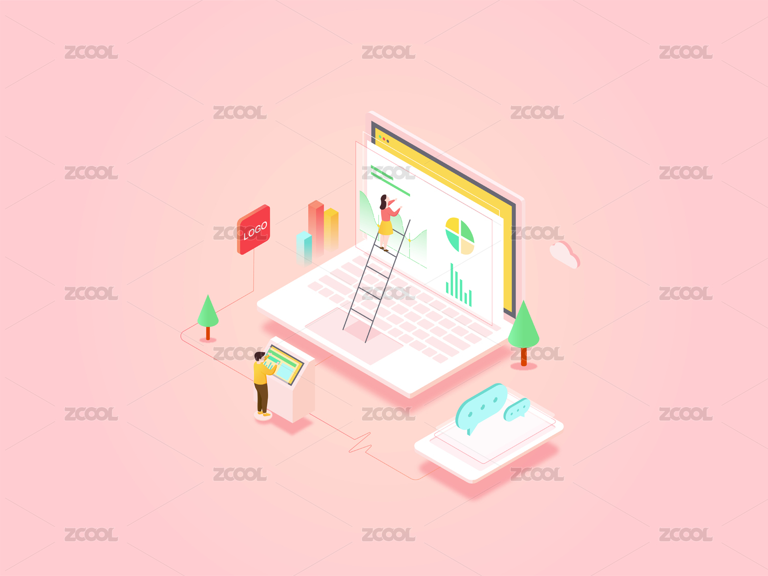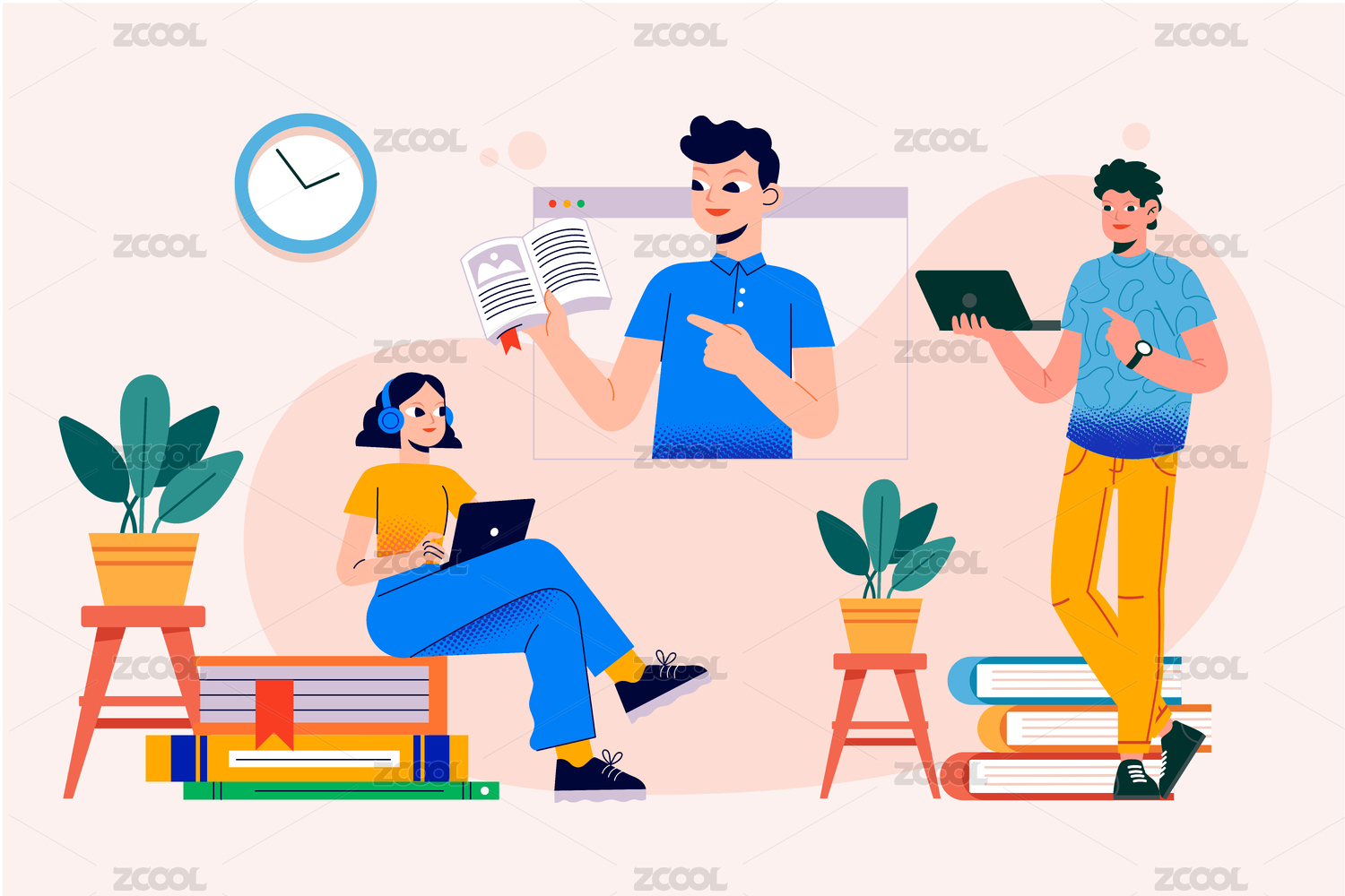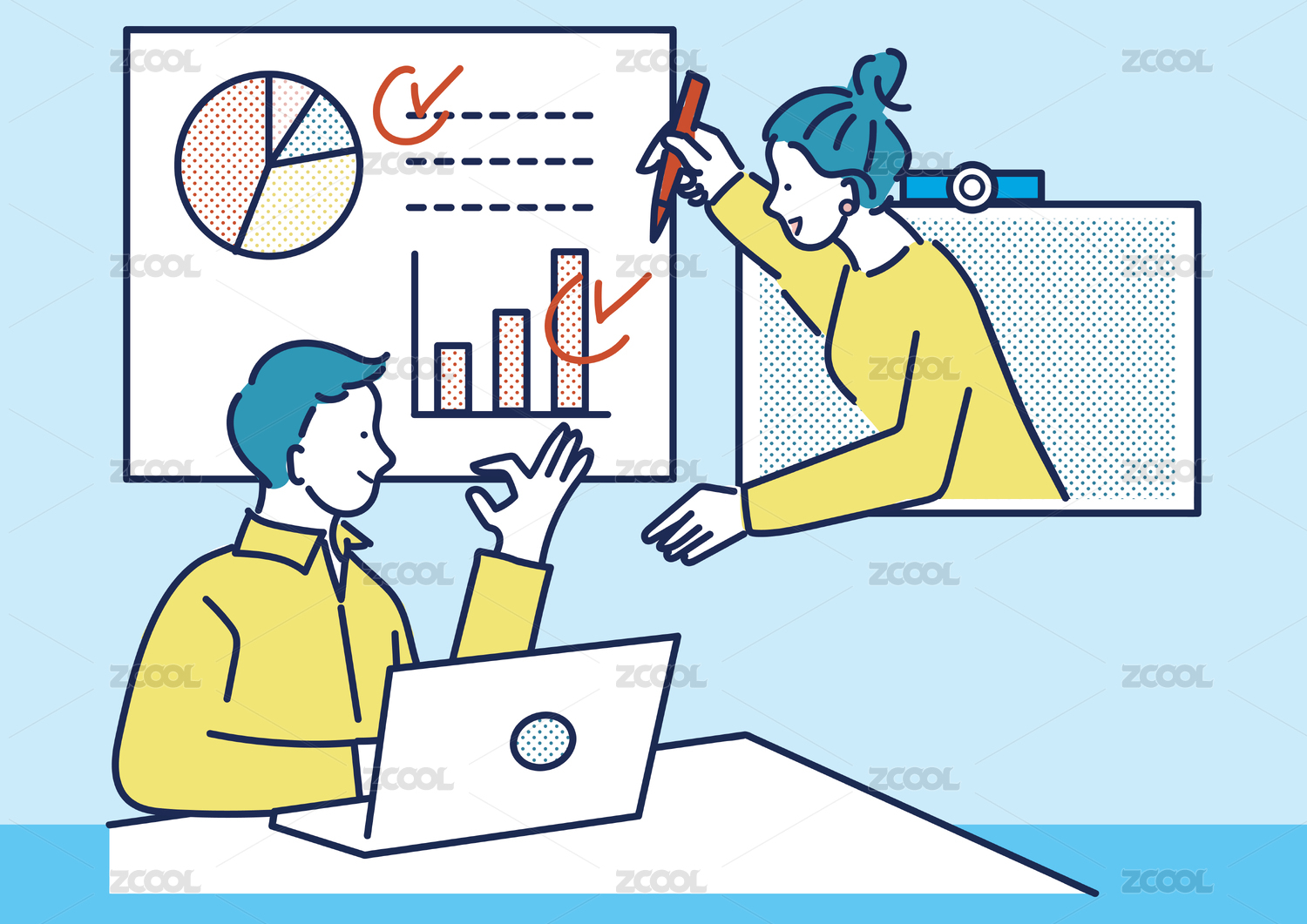 線上協(xié)作辦公的白領互聯(lián)網卡通矢量插畫