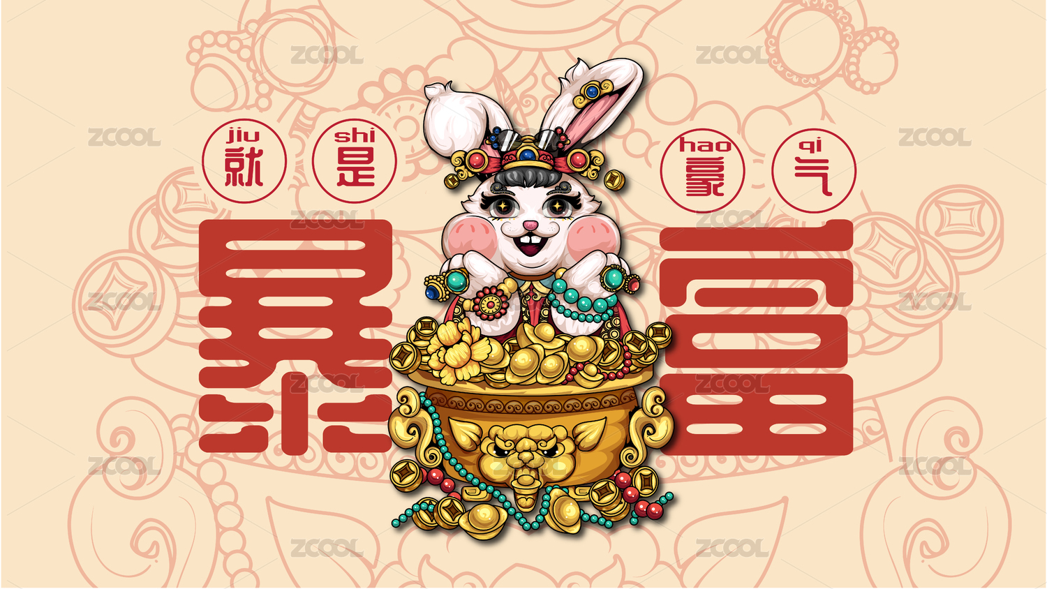 兔子國(guó)潮兔年暴富財(cái)寶矢量插畫