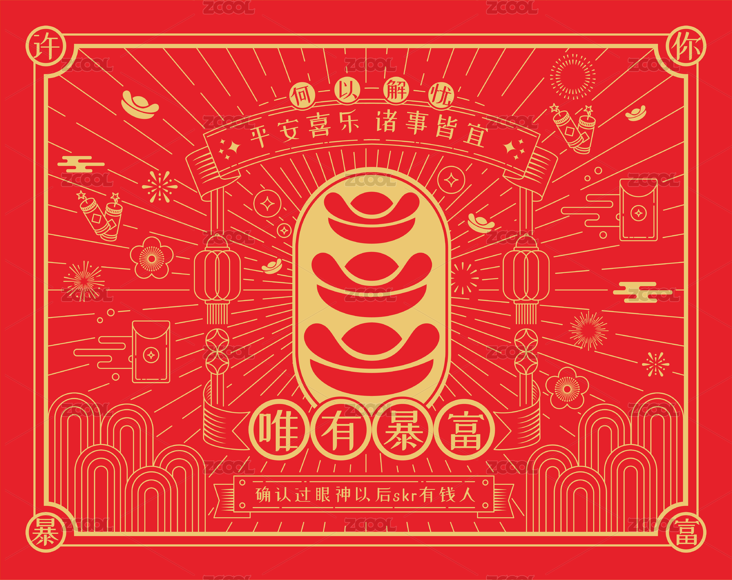 暴富發(fā)財(cái)喜慶吉祥插畫