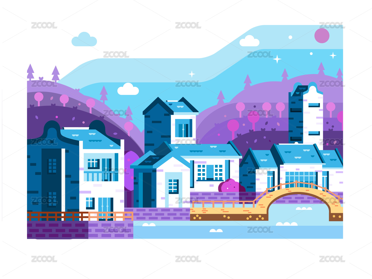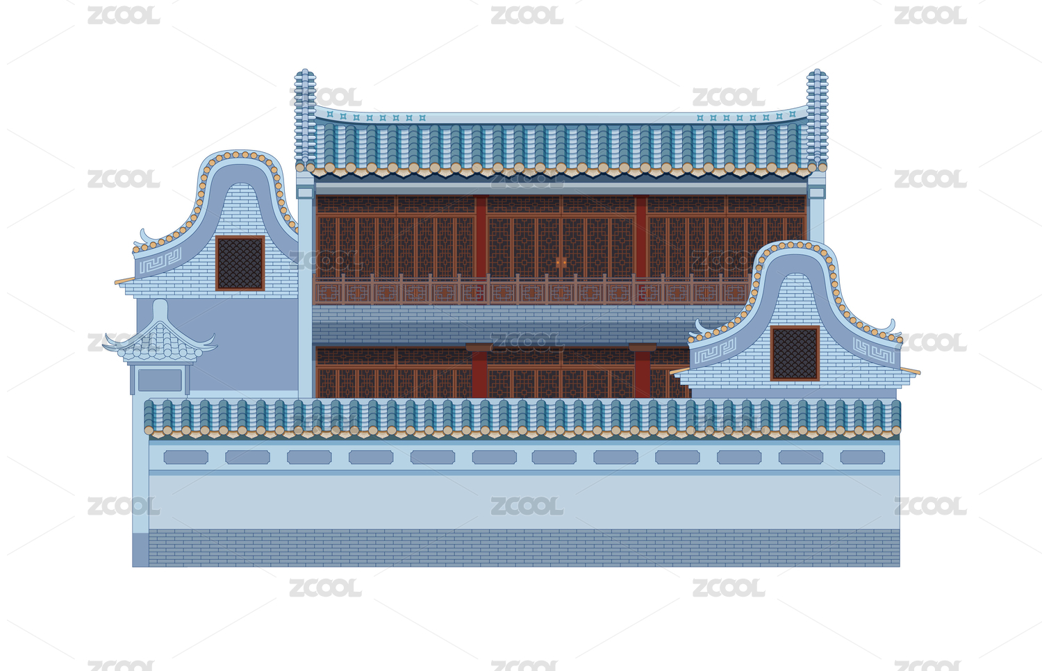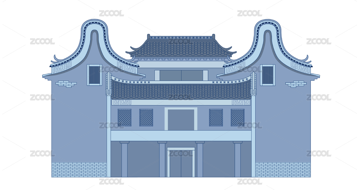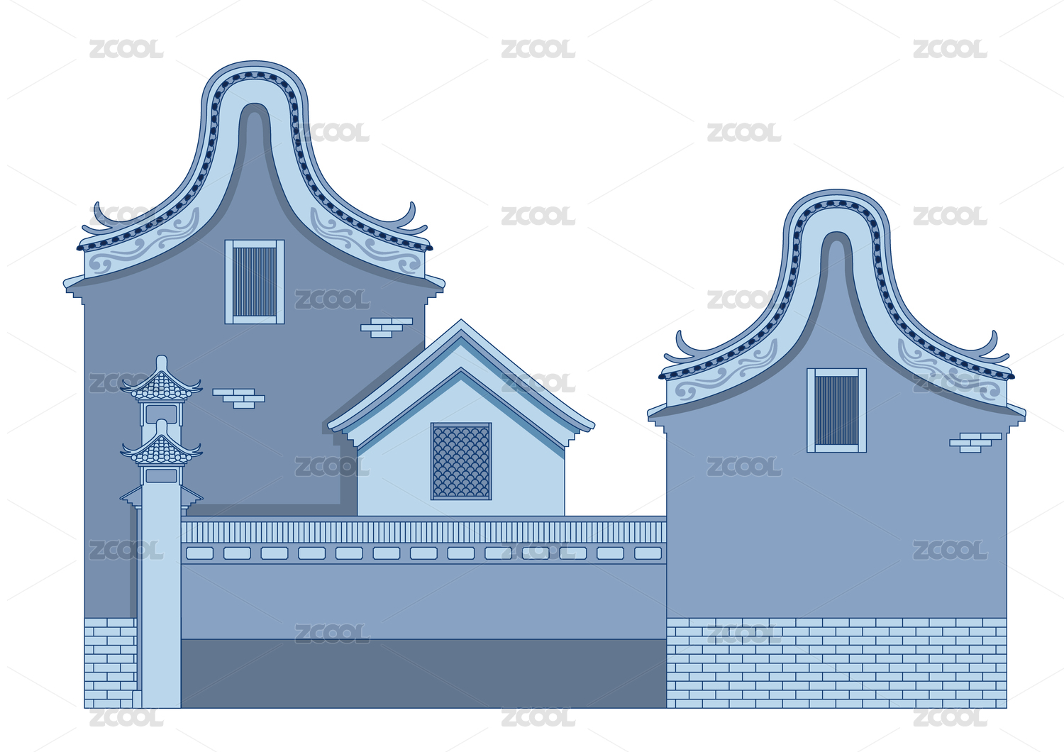 嶺南建筑矢量插畫手繪設(shè)計