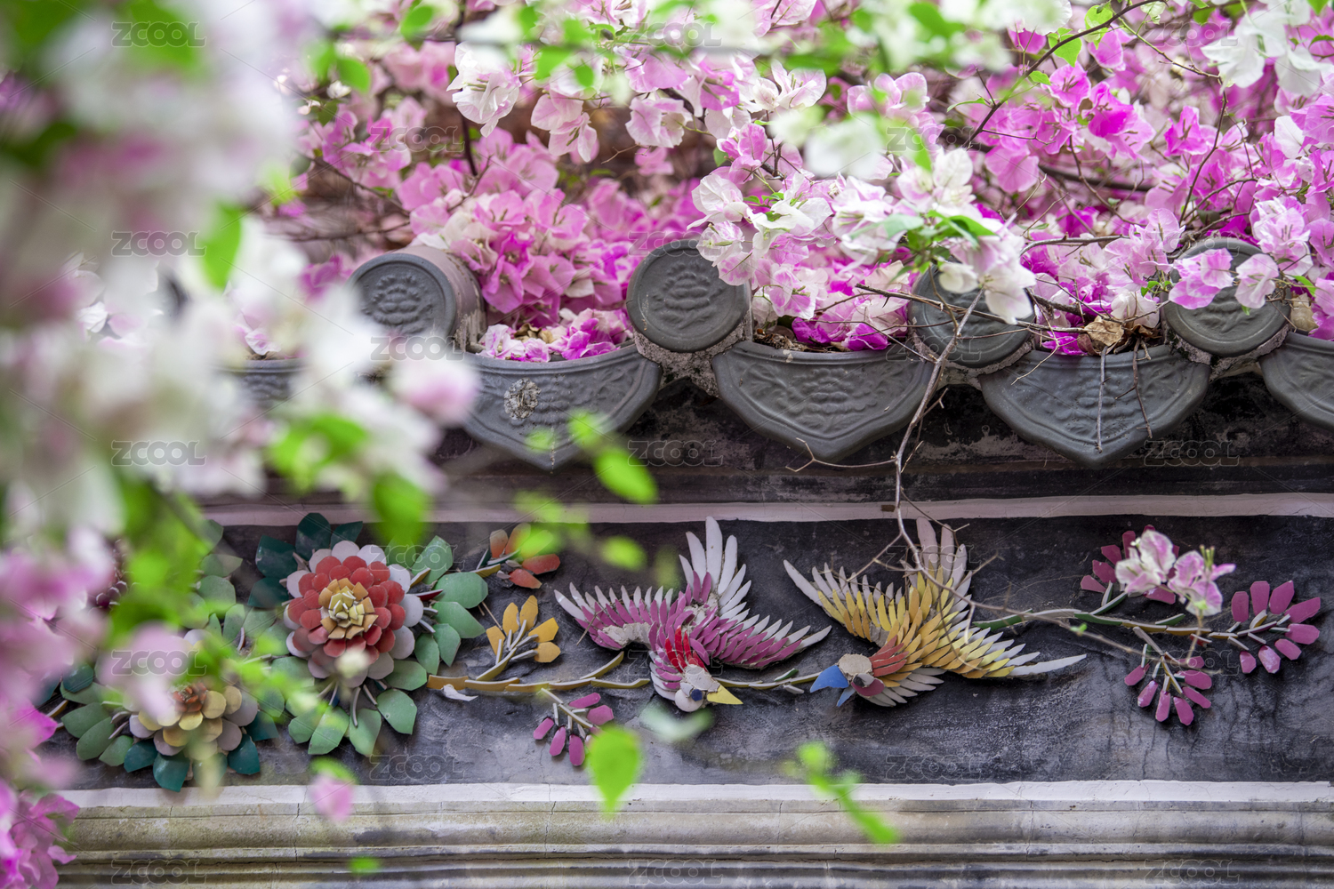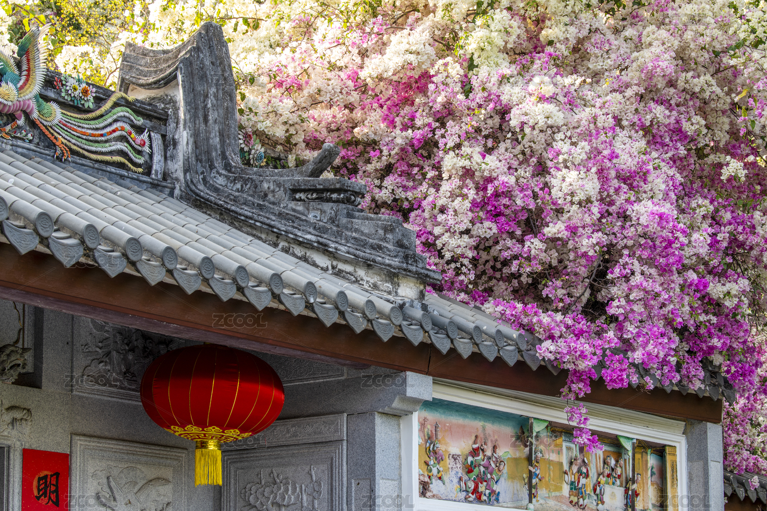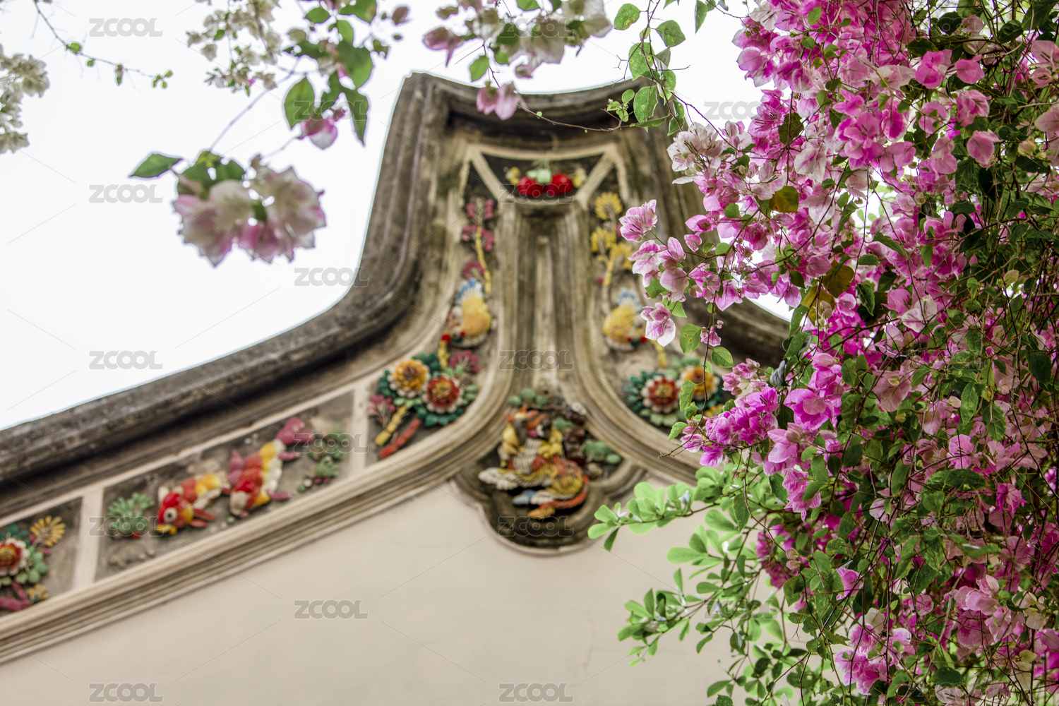 深圳園博園粉紅紫荊花與嶺南建筑圖