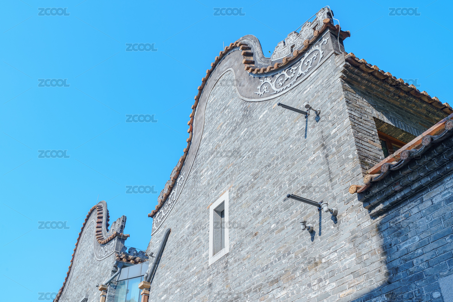 白天陽光下的嶺南建筑鍋耳屋建筑古村落