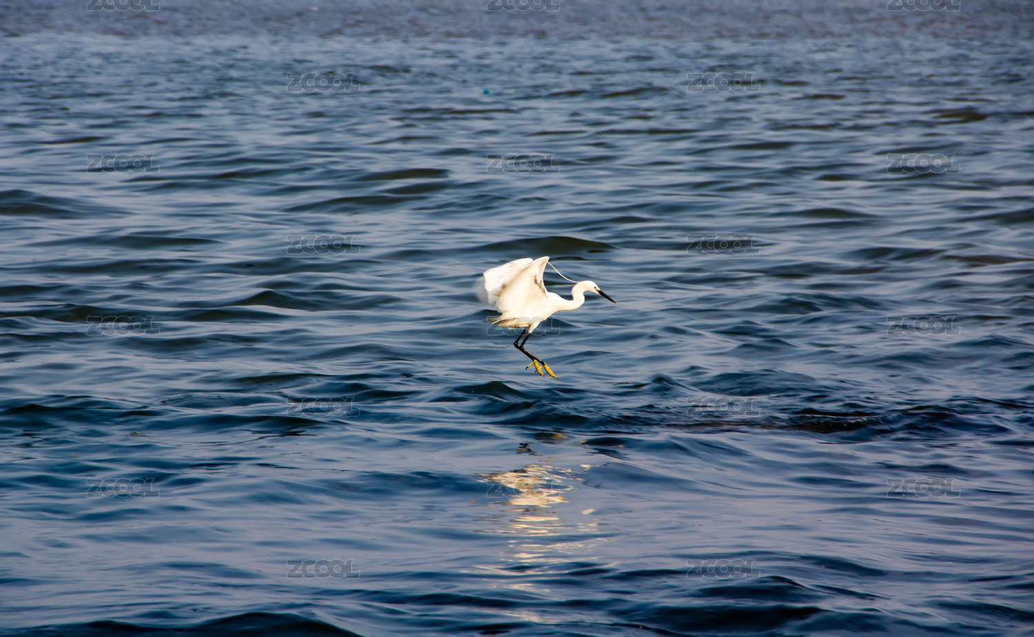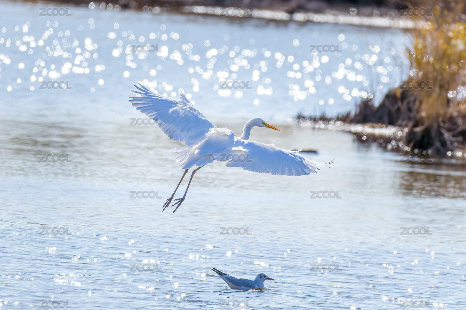 白鷺在湖泊濕地飛翔覓食