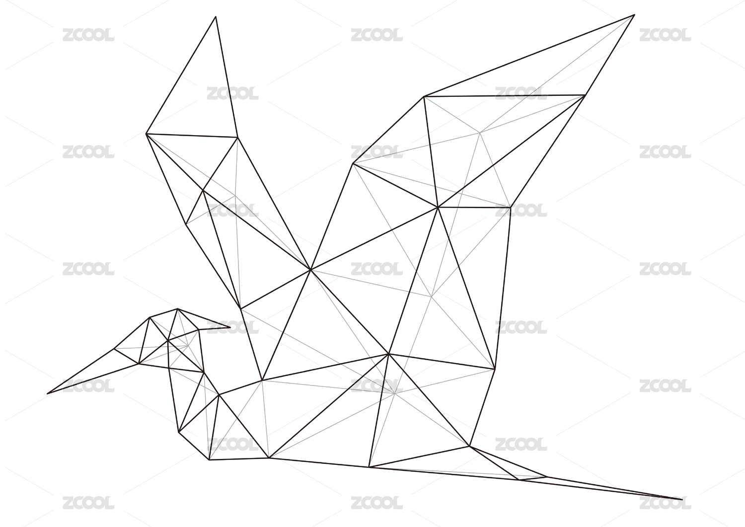 白鷺 黑白科技風(fēng)低多邊形幾何線稿插畫(huà)