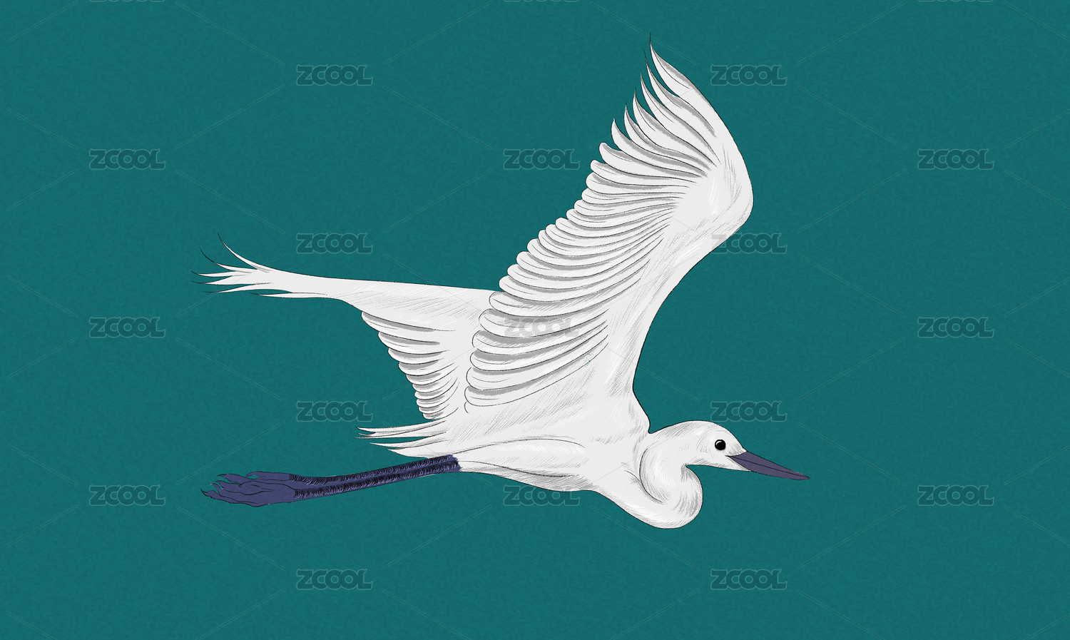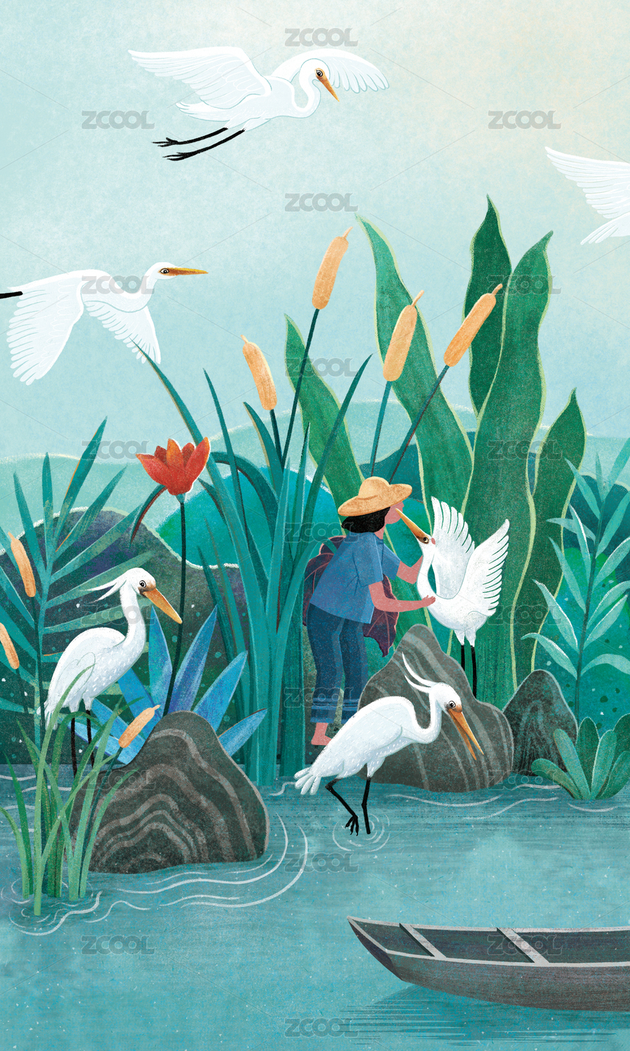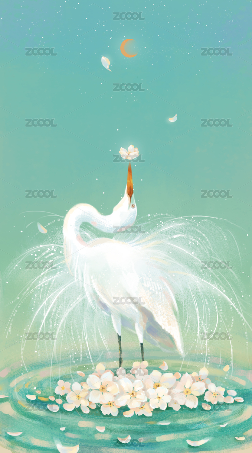 白鷺和小船插畫(huà)