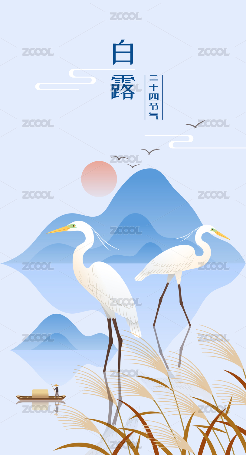 24節(jié)氣兩只白鷺在白露字體邊盤(pán)旋