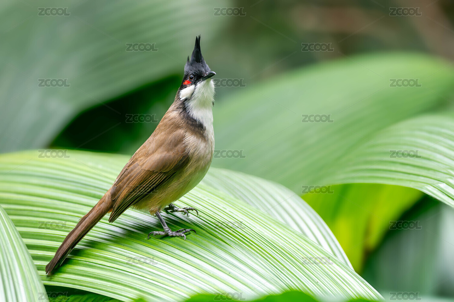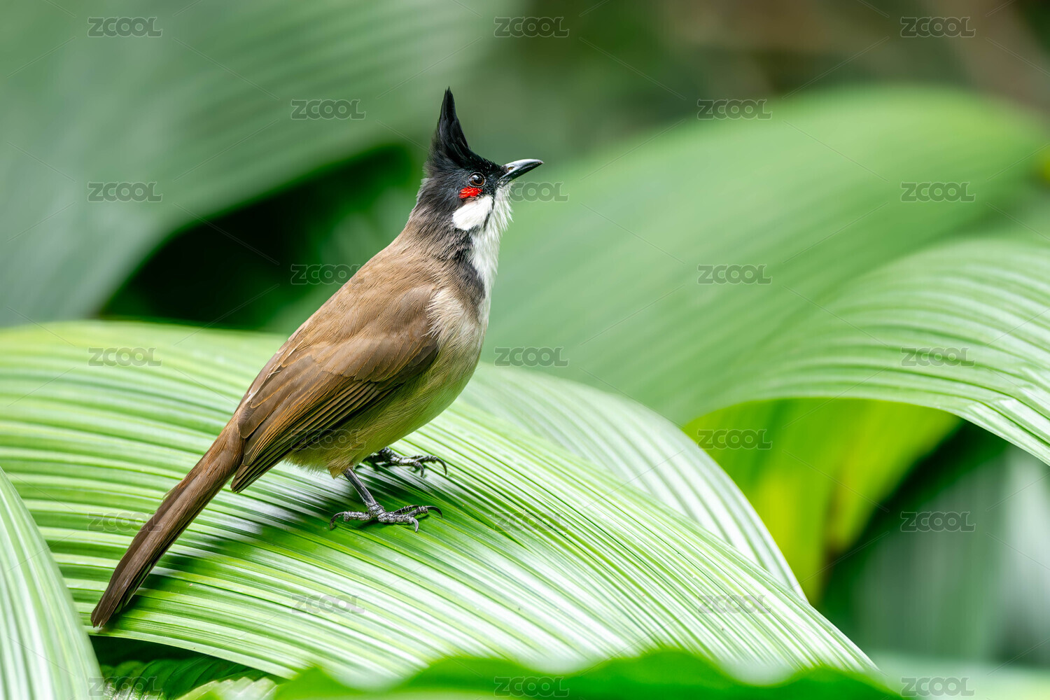 站在葉子上的紅耳鵯