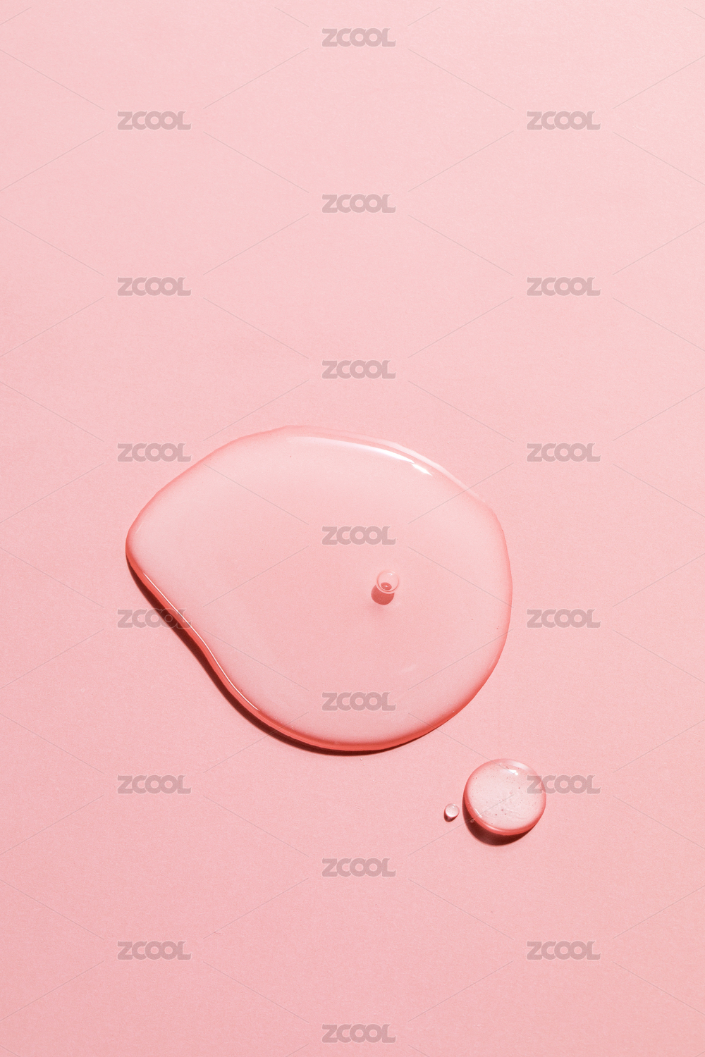 粉紅背景上不同形狀的幾滴保濕液