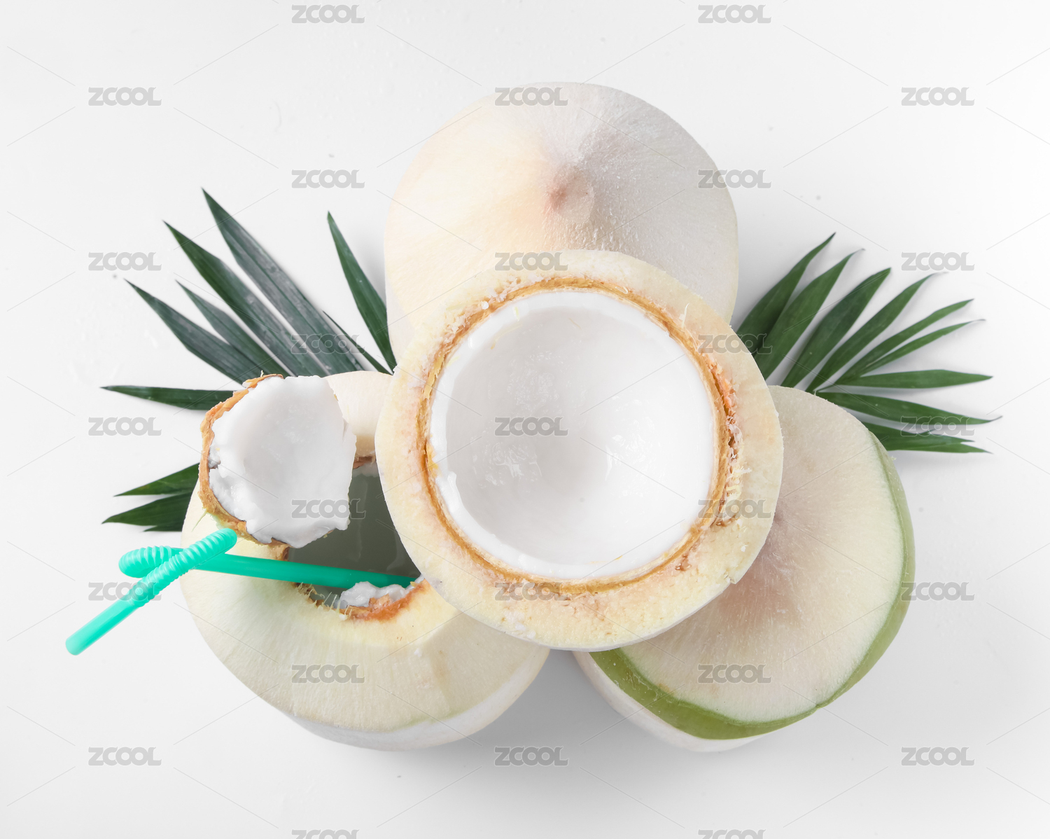 毛椰子和椰肉椰葉