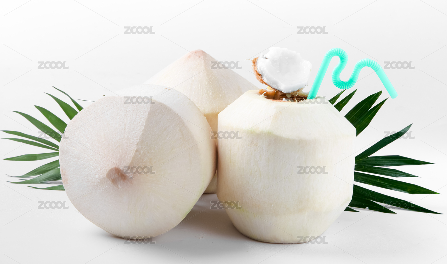 白底上的海南新鮮椰子