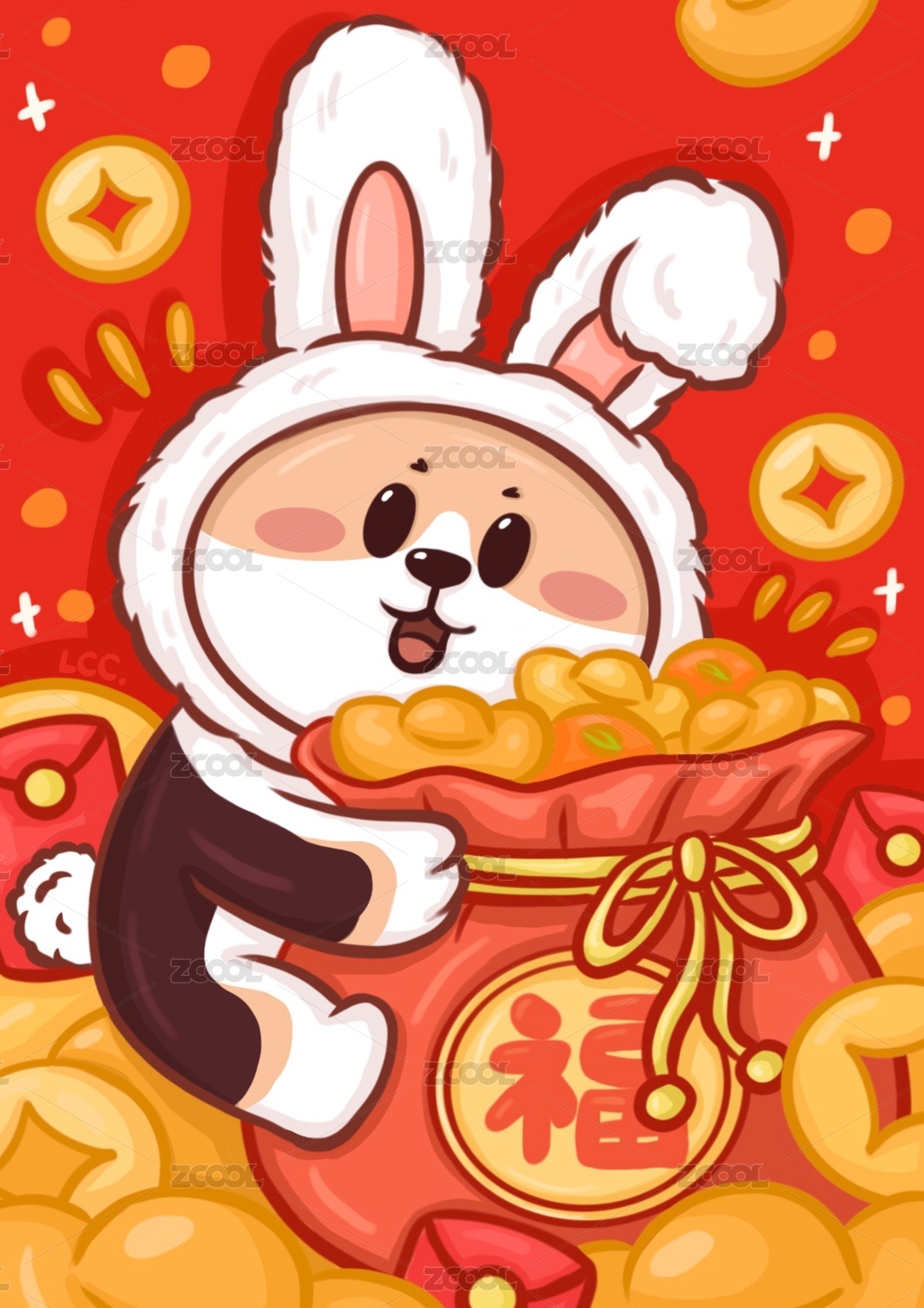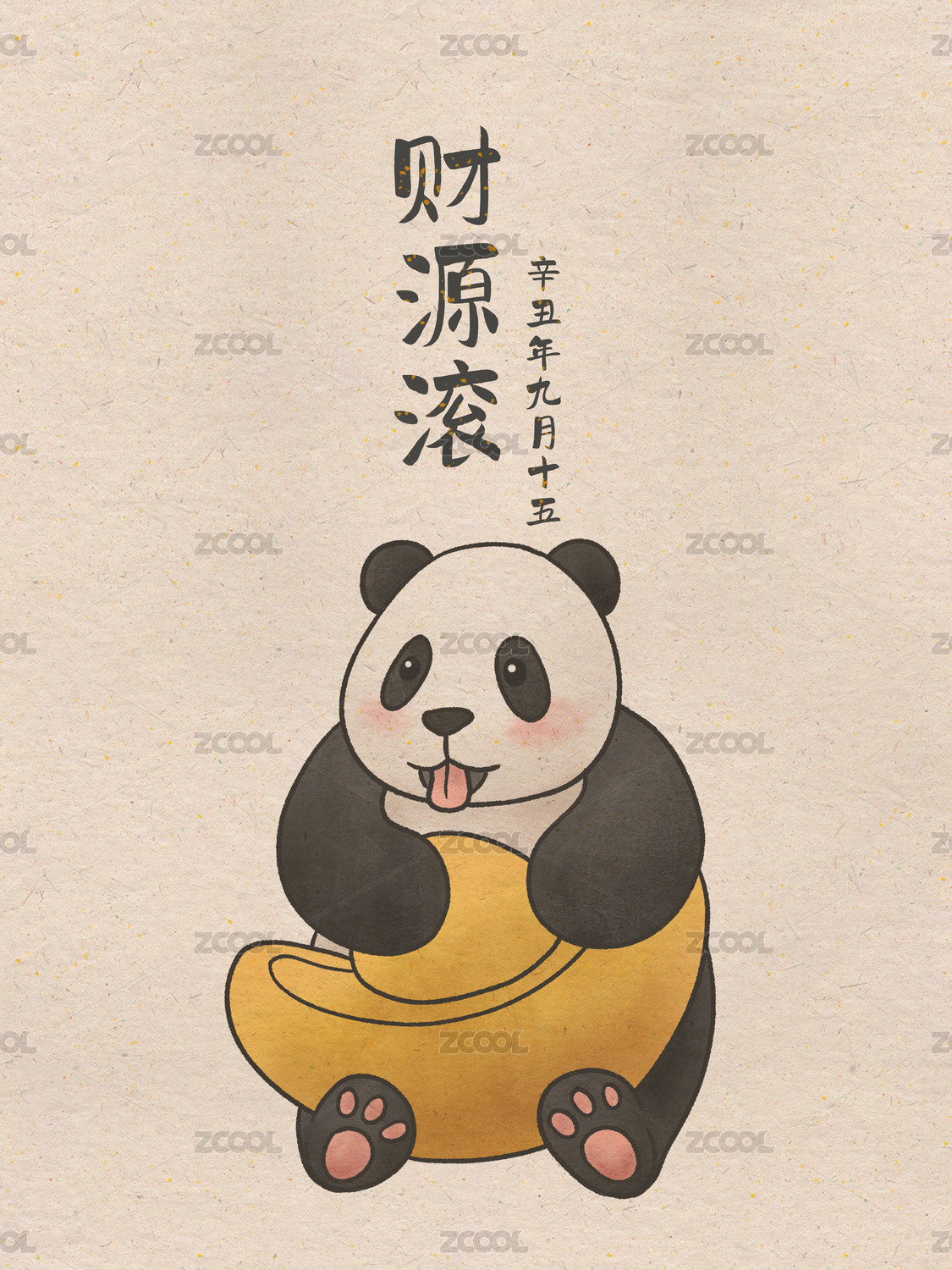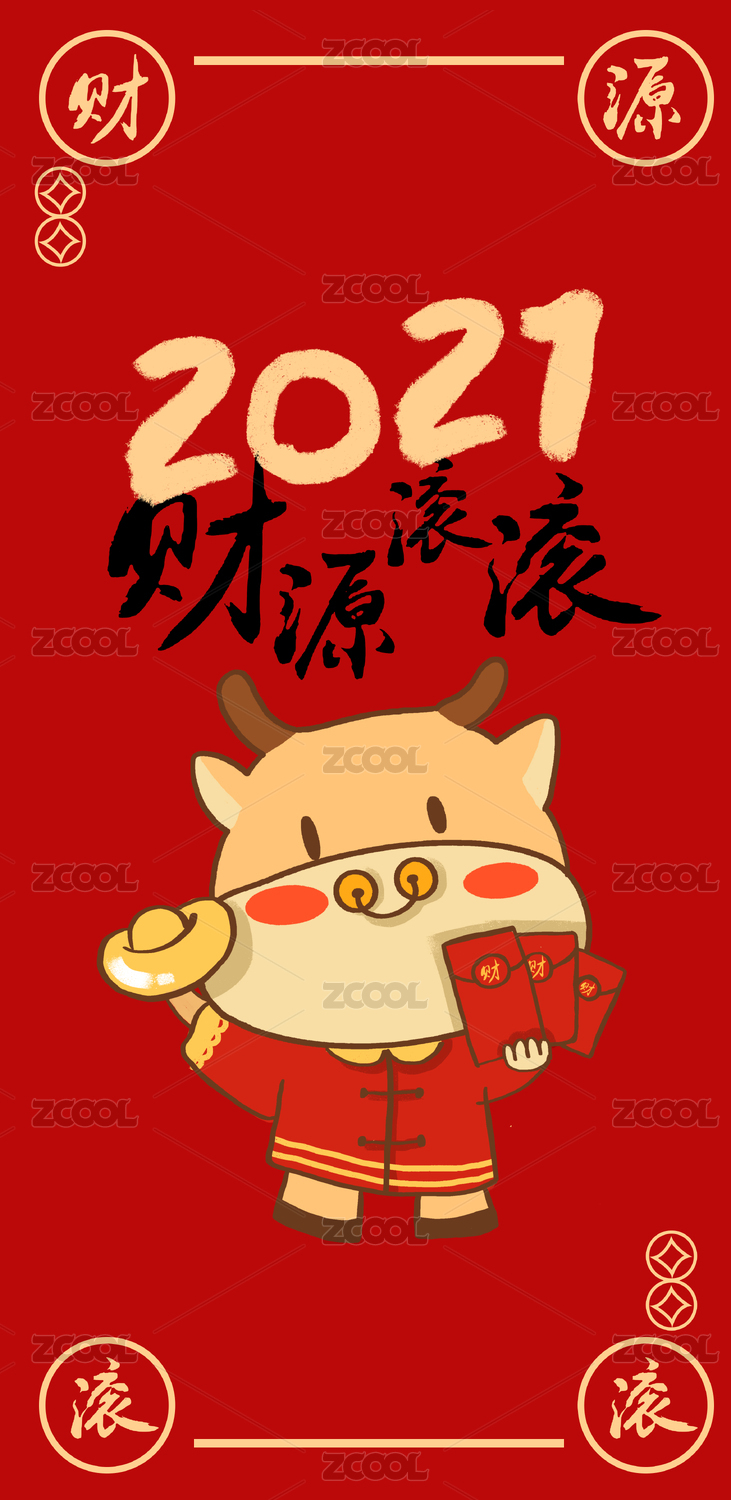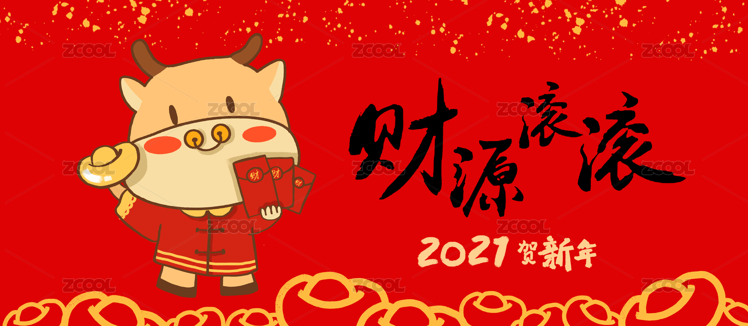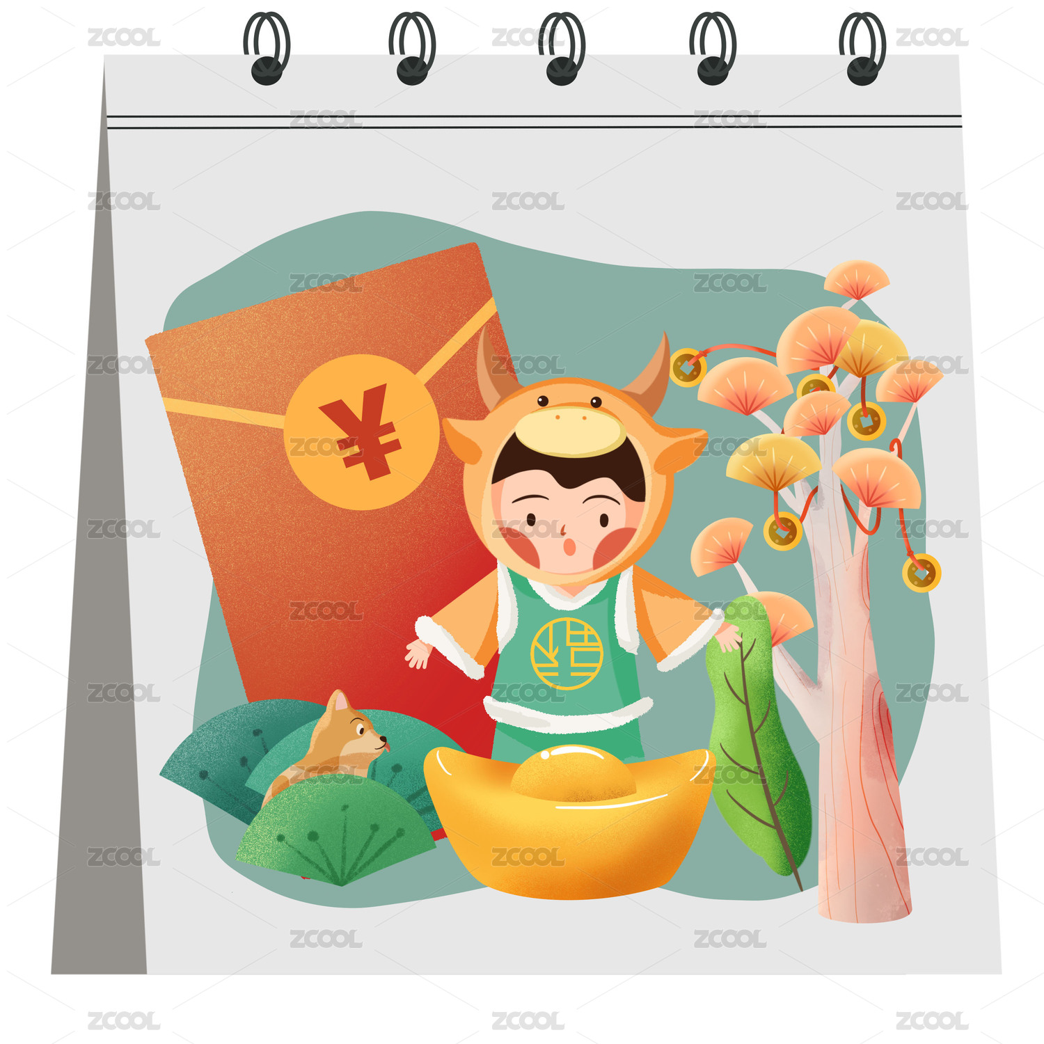 元寶牛年春節(jié)日歷人物財源滾滾插畫