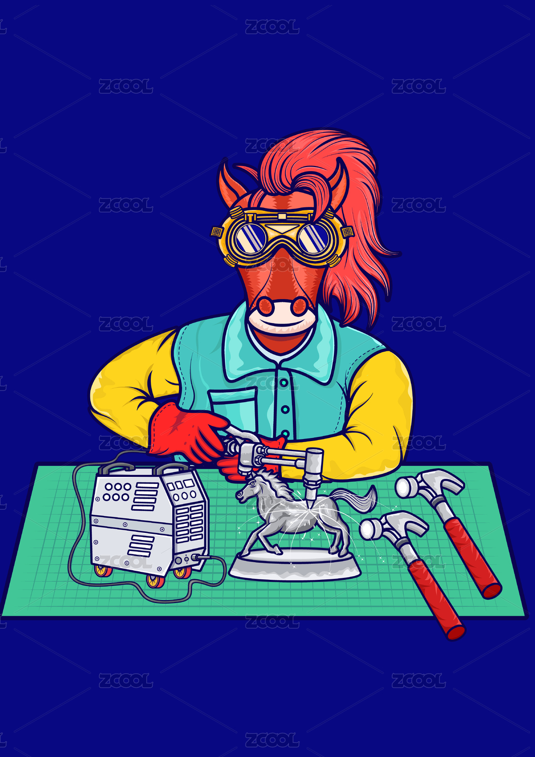 焊馬創(chuàng)意潮流維修電焊插畫