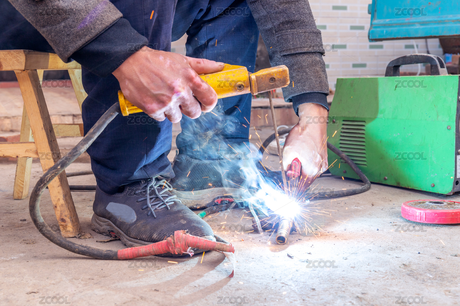 工人正在用電焊焊接金屬
