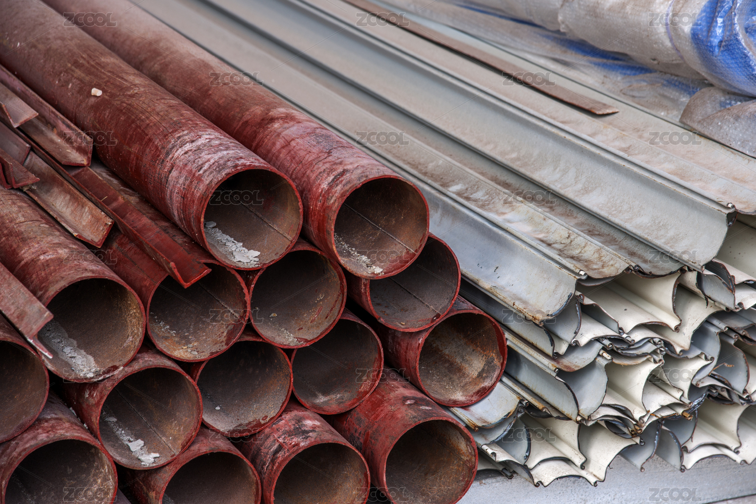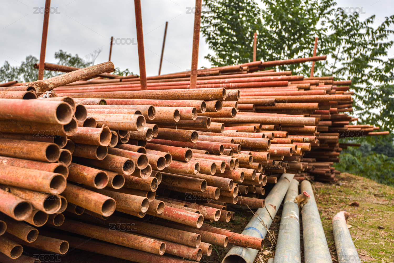 丟棄在野外露天銹跡斑駁的建筑材料鋼管