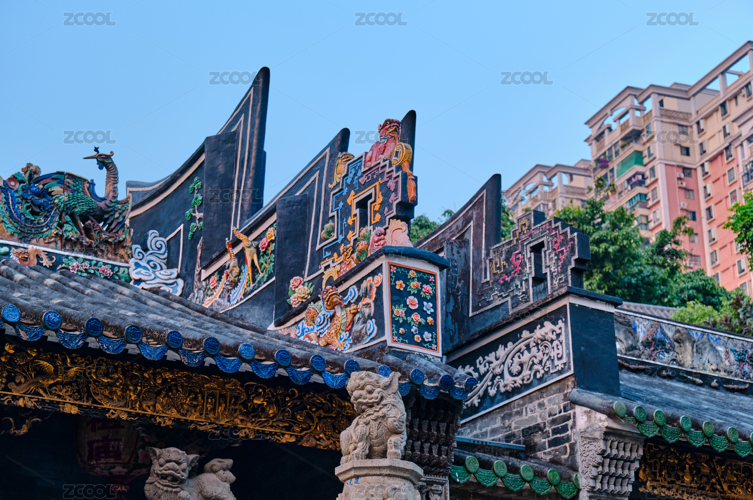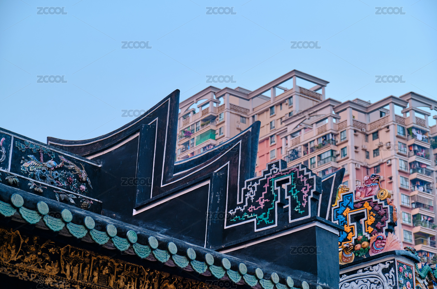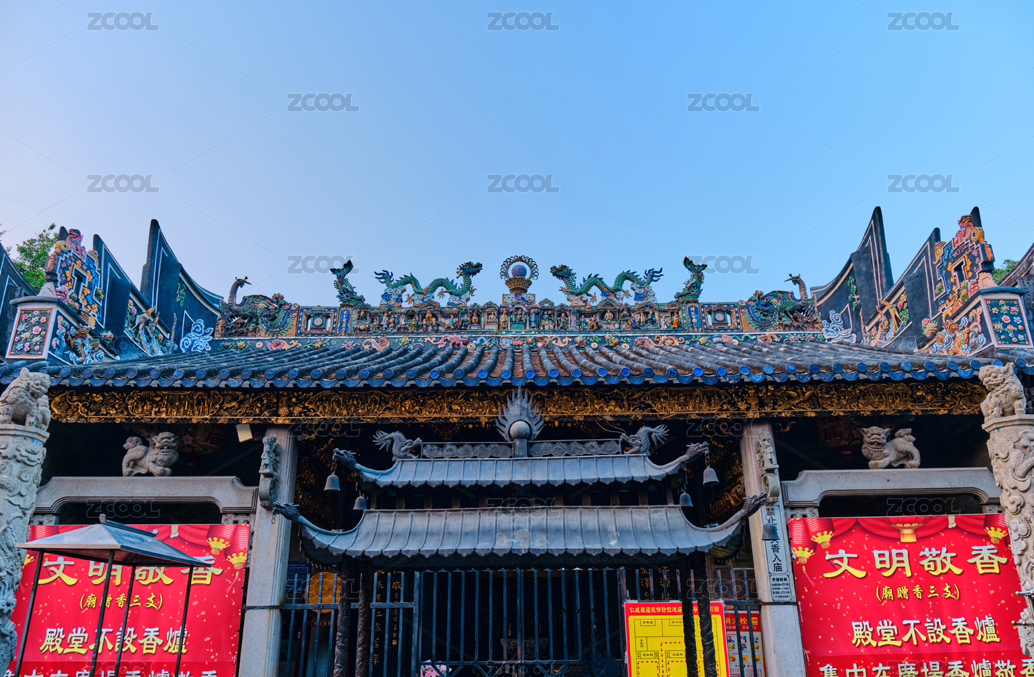 中國浙江紹興嵊州城隍廟古戲臺的木雕建筑