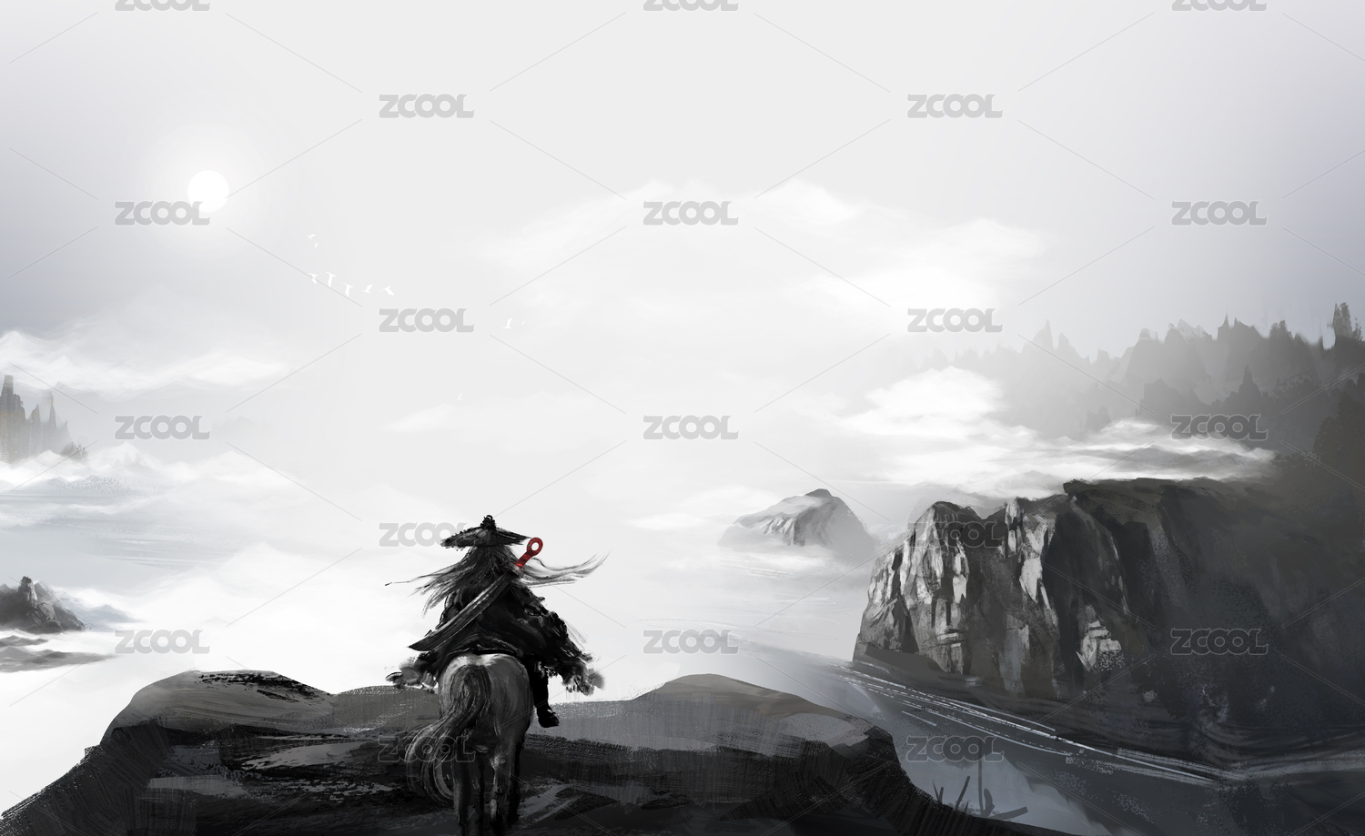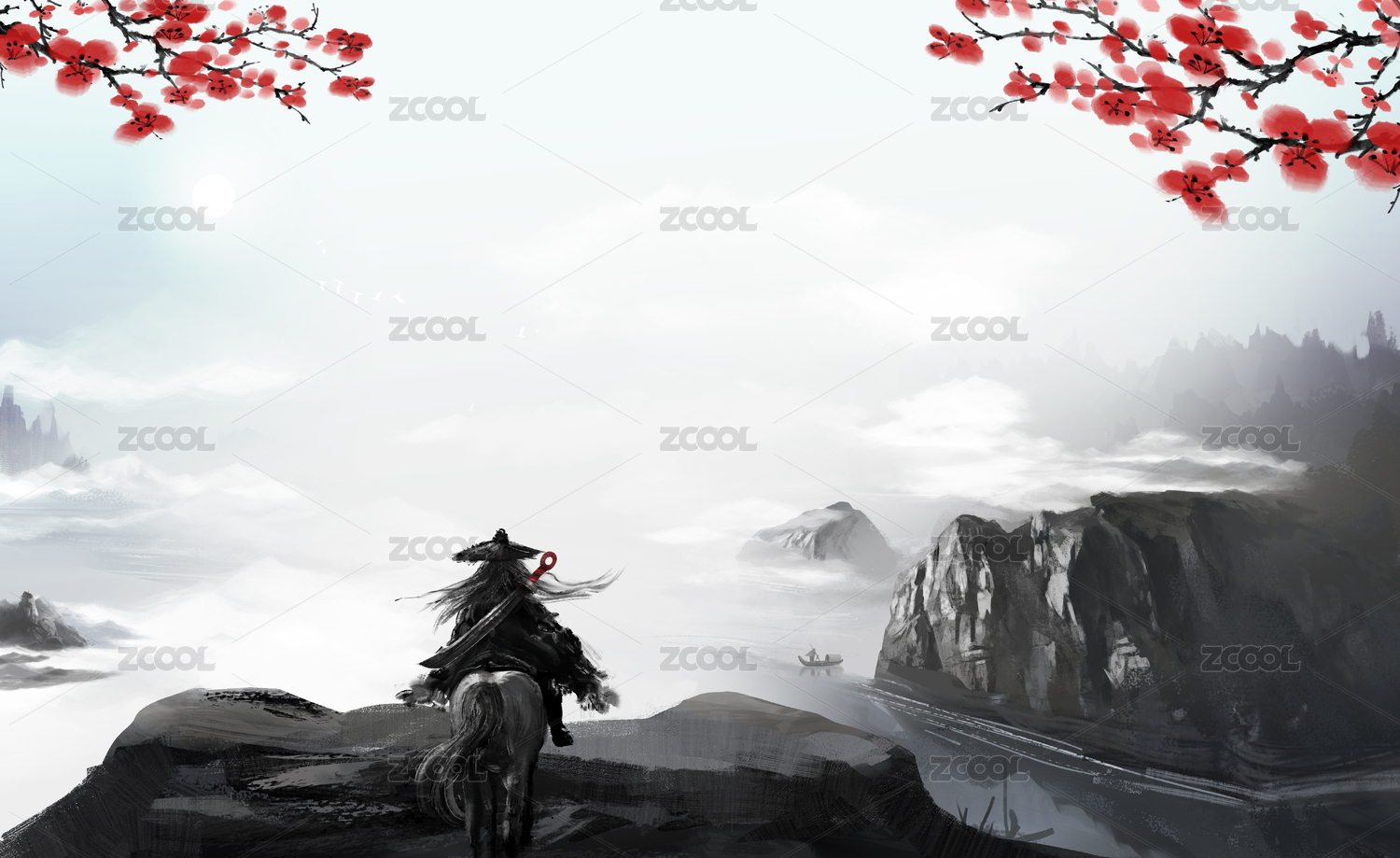 中國風(fēng)快意江湖武俠水墨畫背景