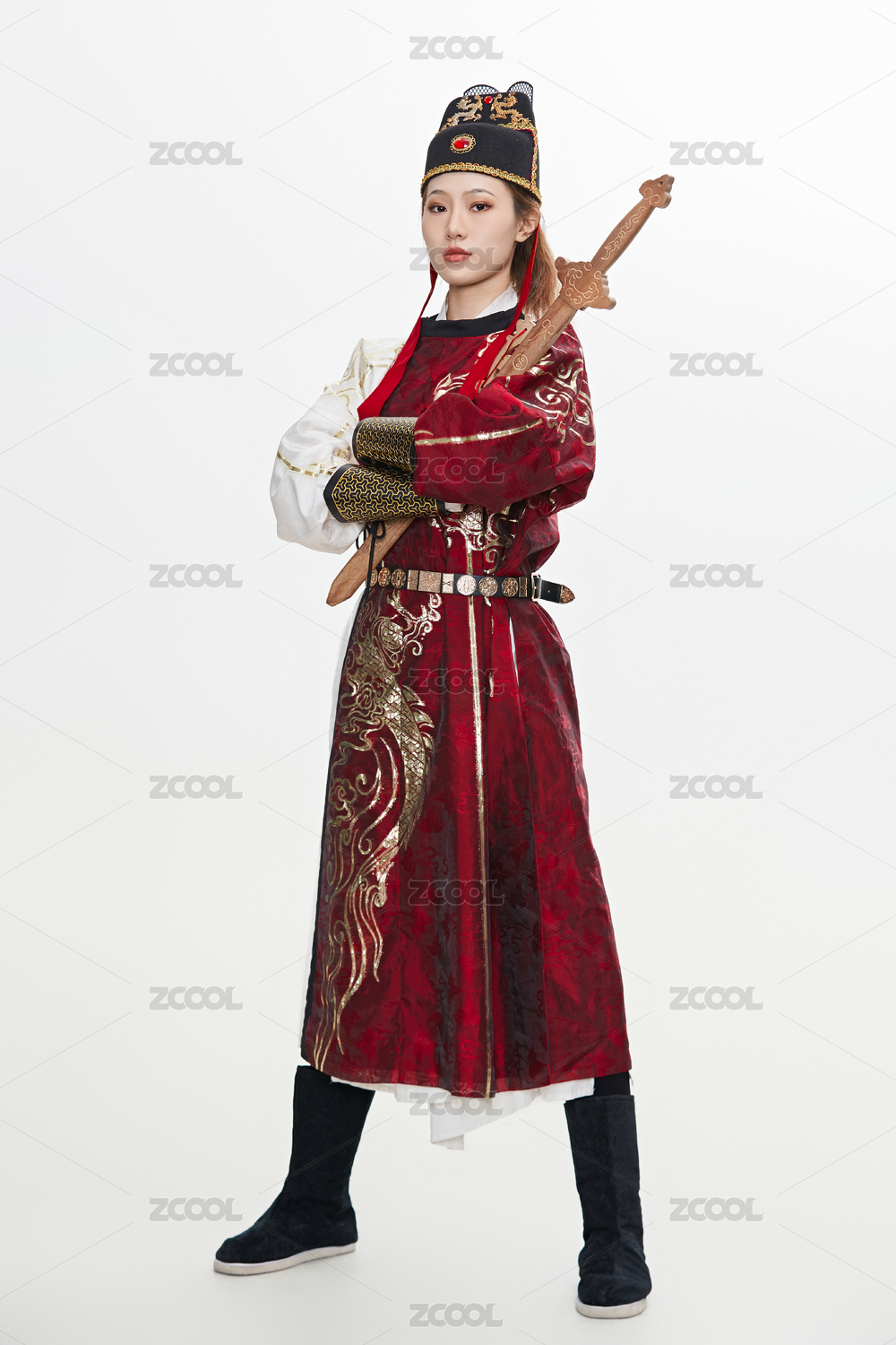 身穿武俠古風(fēng)漢服英氣十足的亞洲美女