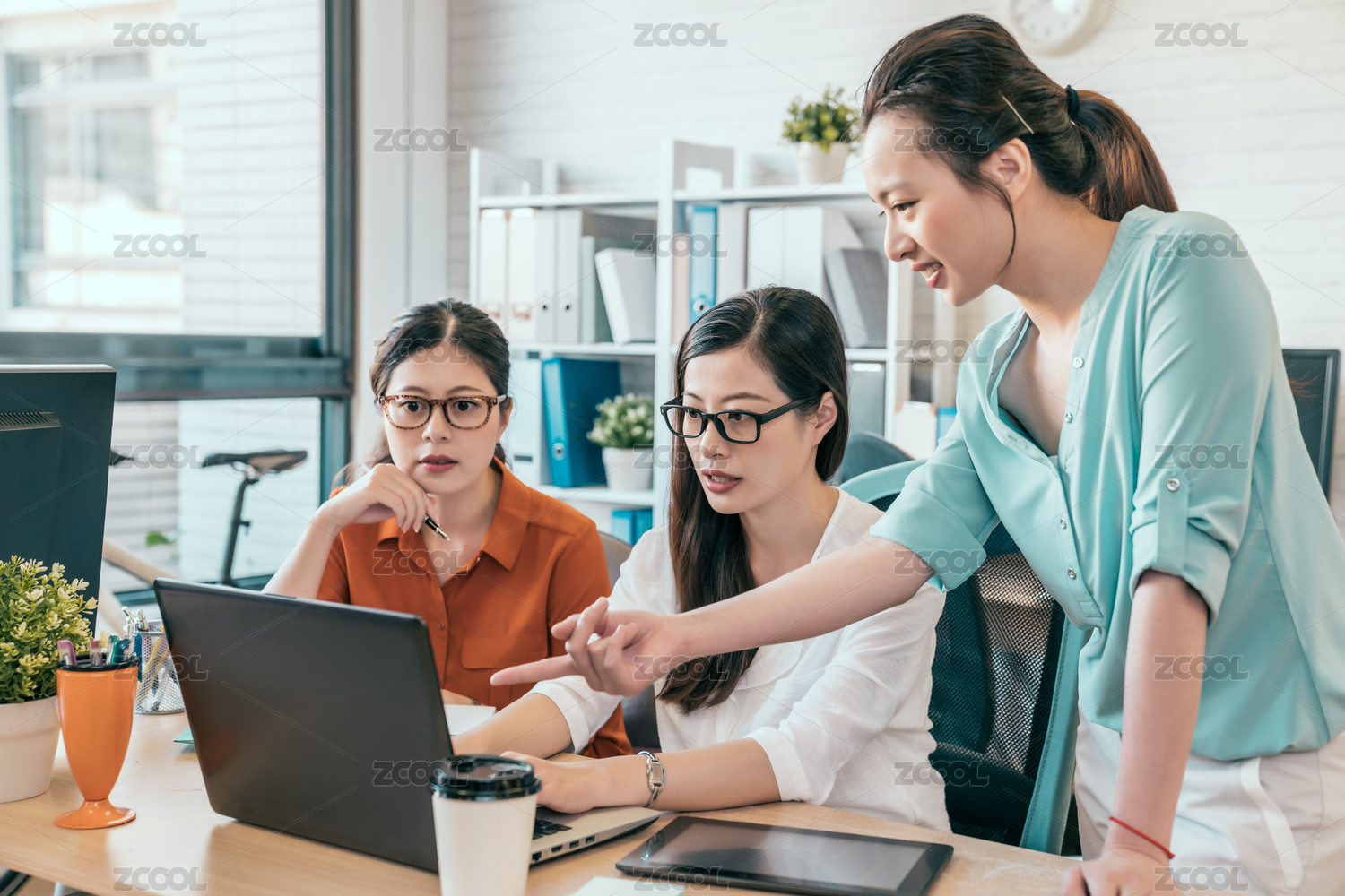 成功的年輕的商務(wù)人士使用的小工具電腦PC,討論文件和會議期間微笑