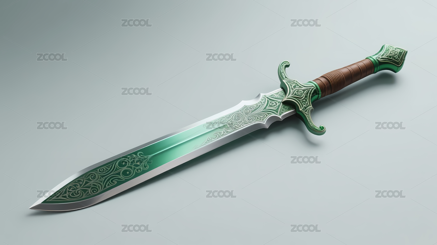 綠銀配色精美長劍