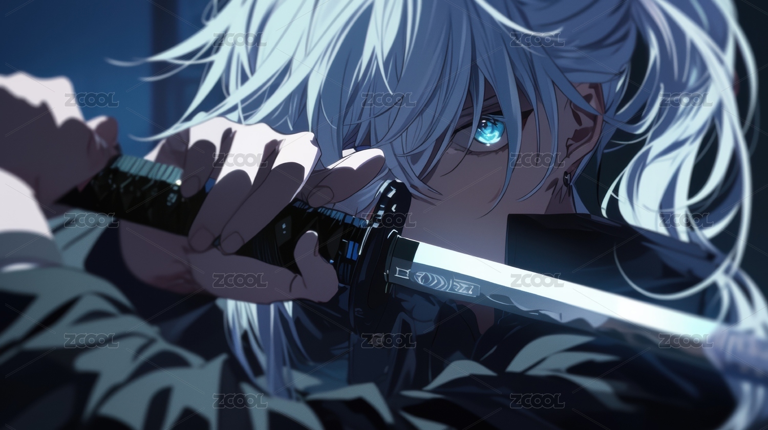銀發(fā)角色手持長劍的特寫