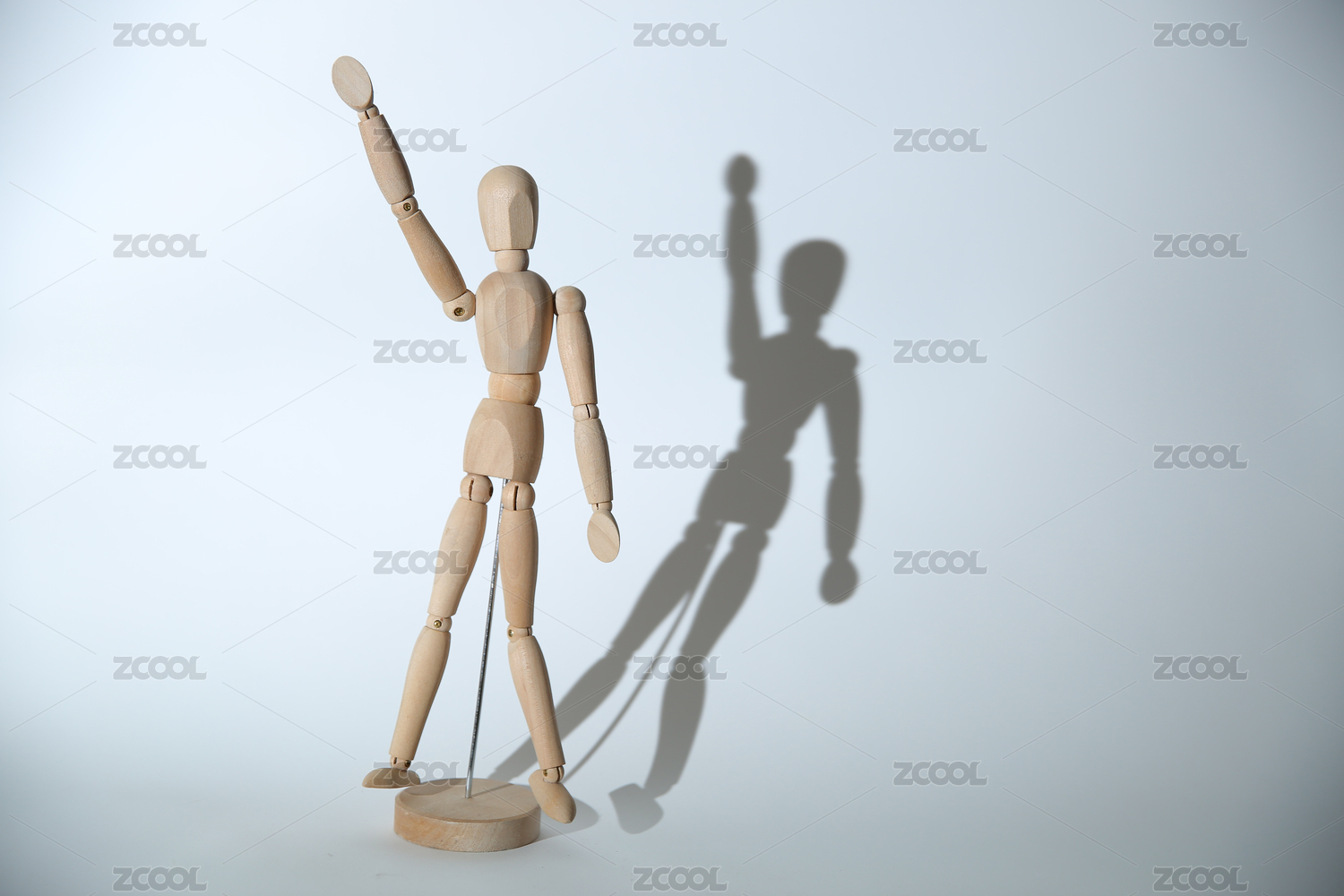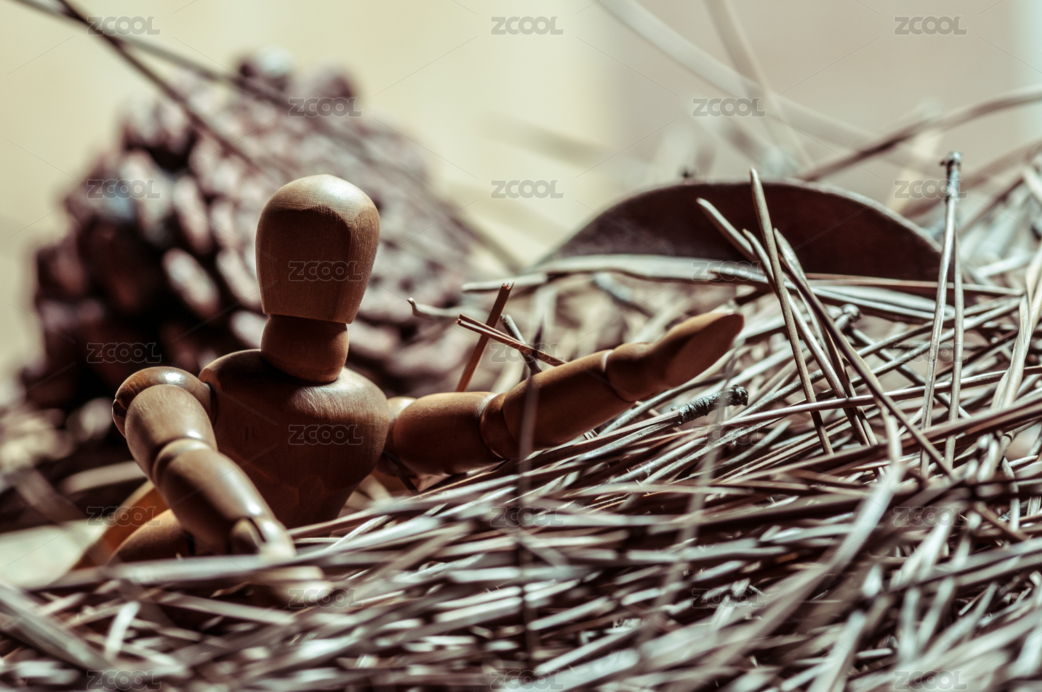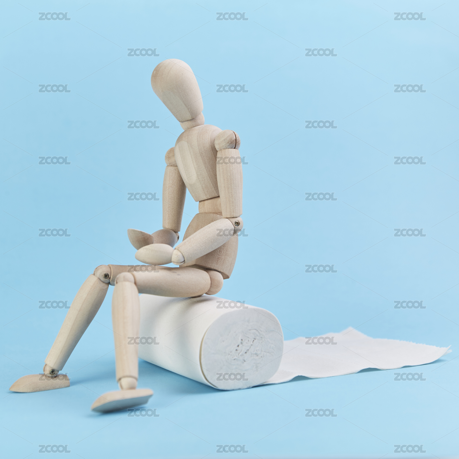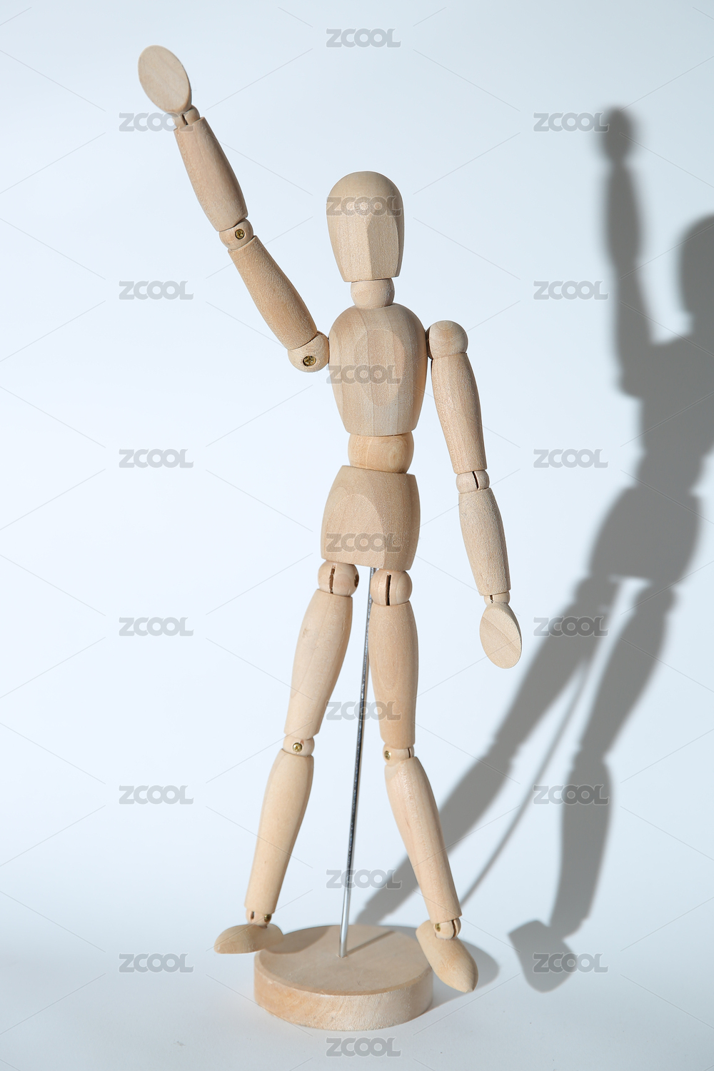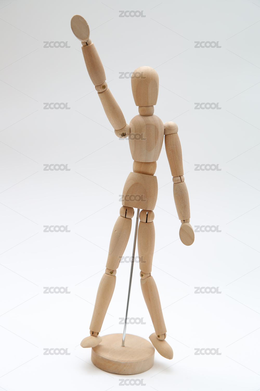 筆記本電腦與側(cè)坐的木偶模型靜物特寫