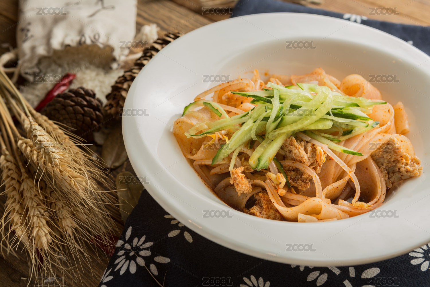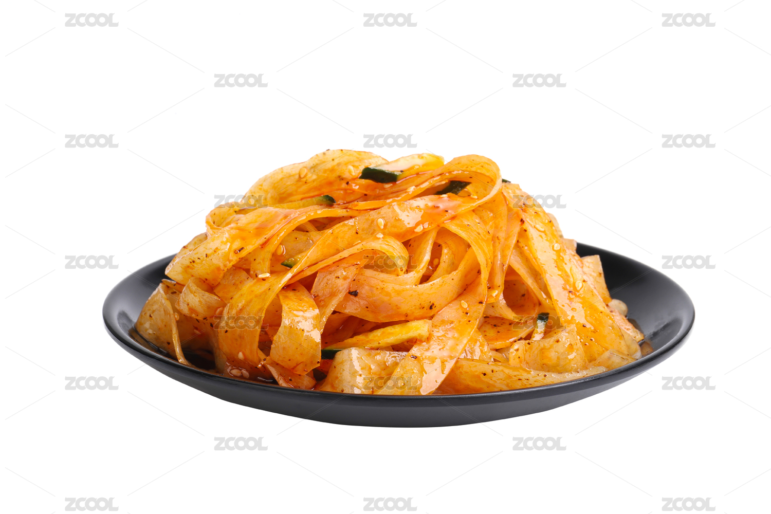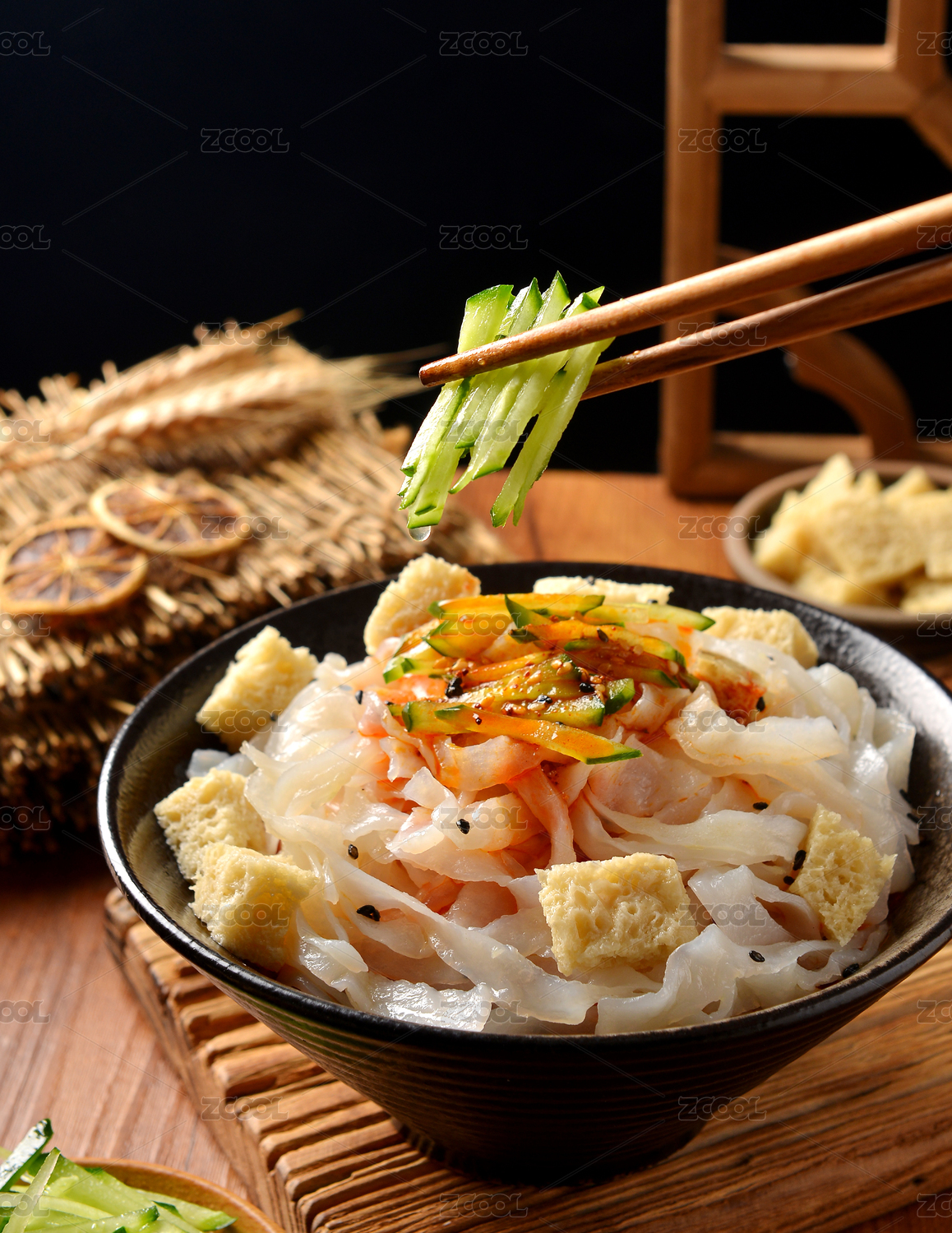 放在盤子里用筷子夾起來的搟面皮涼皮