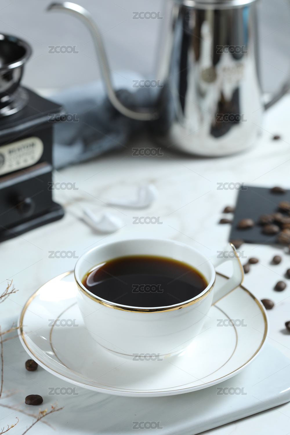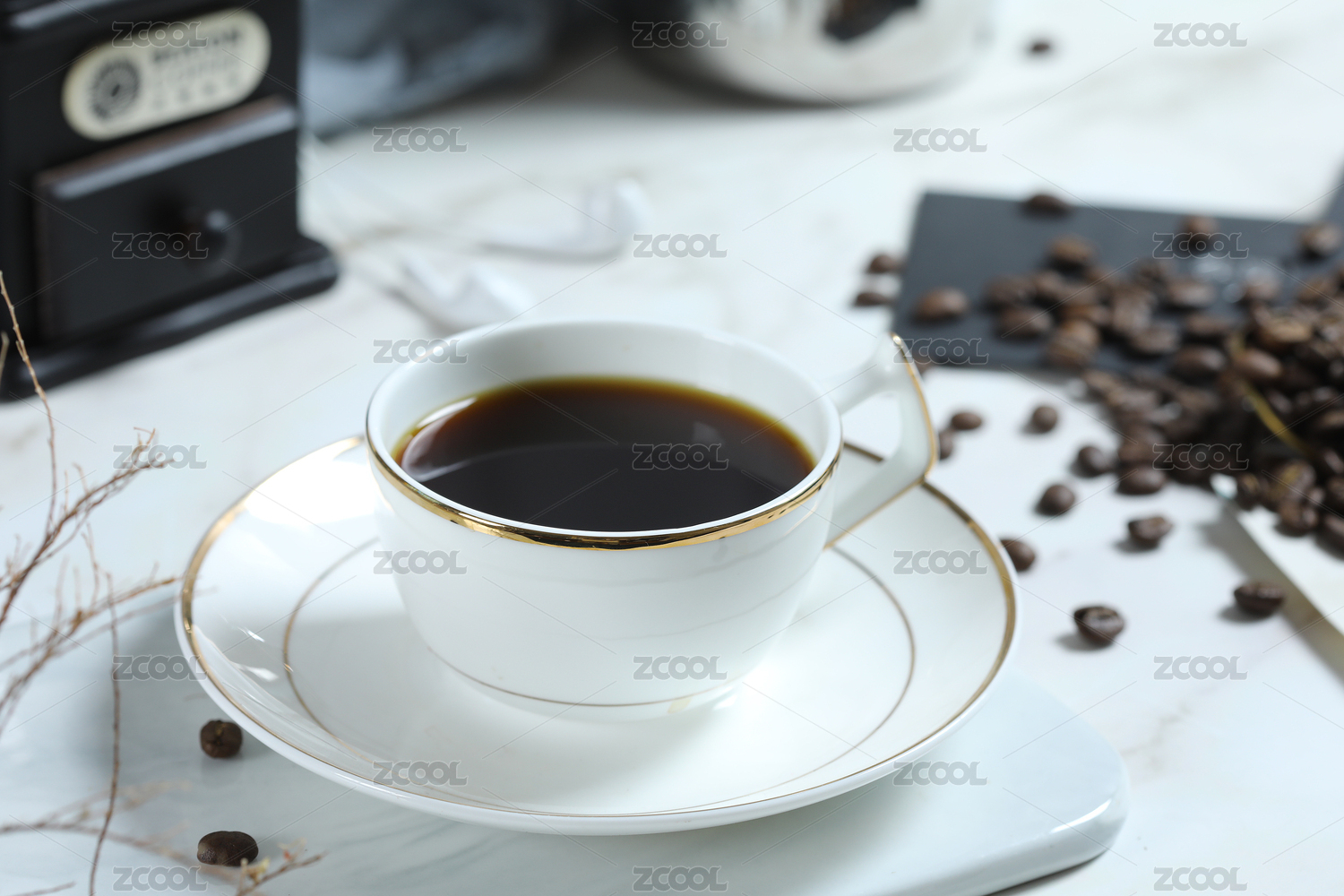一杯黑咖啡飲品瓷器靜物