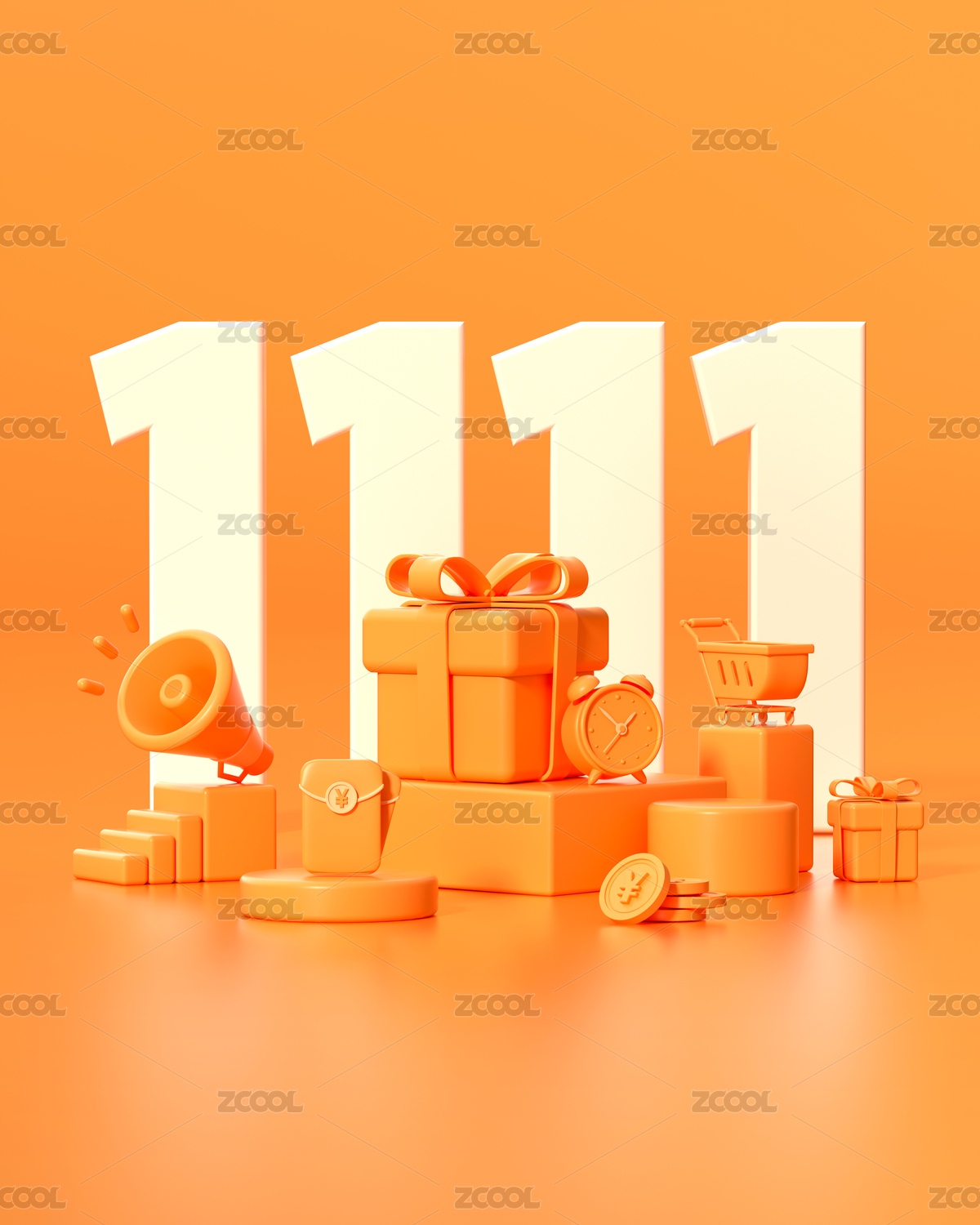 大促電商橙色元素堆kv大字活動海報