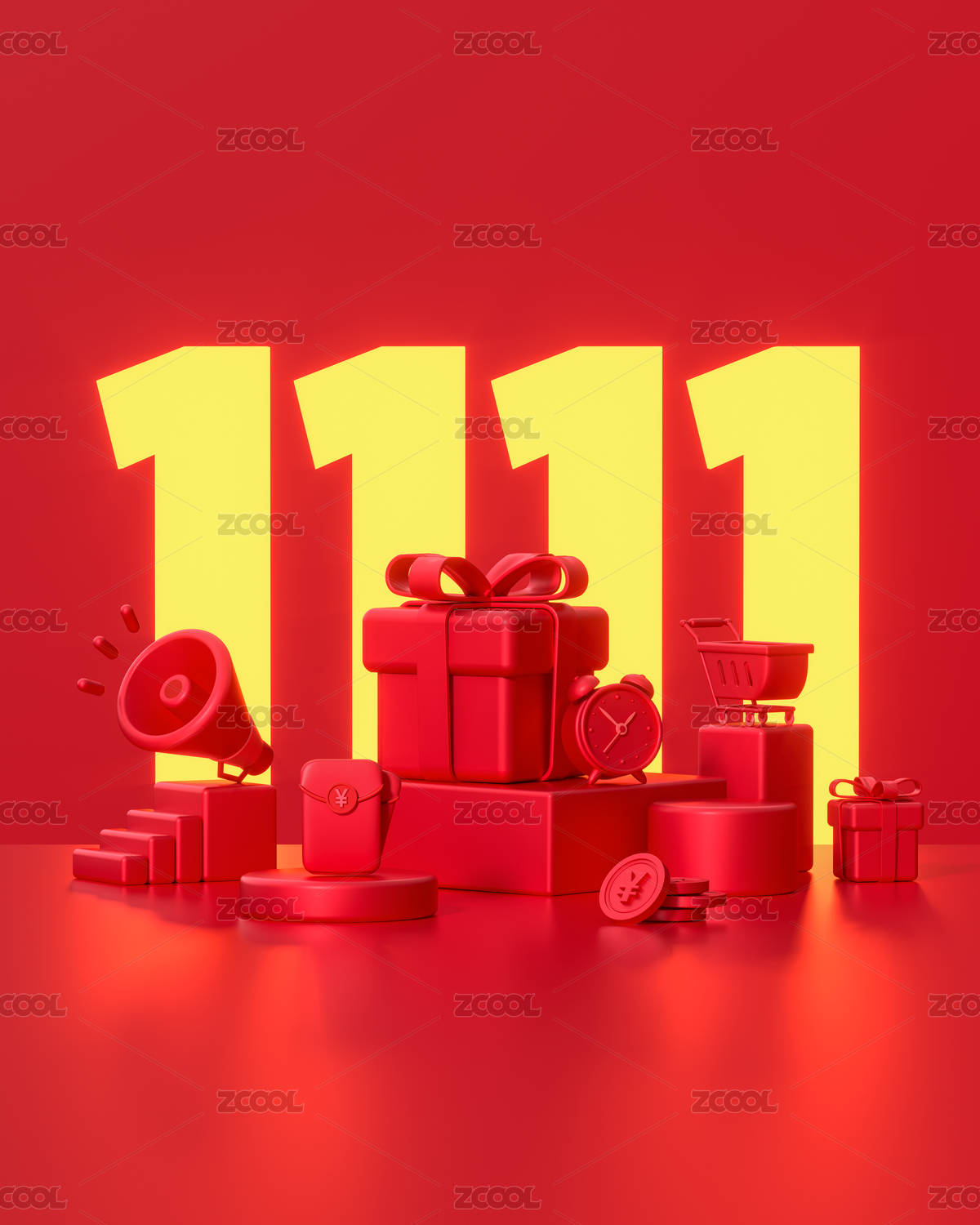 大促電商紅色元素堆大字活動海報