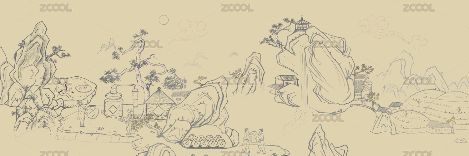 酒工坊釀酒作坊中國風(fēng)插畫線稿