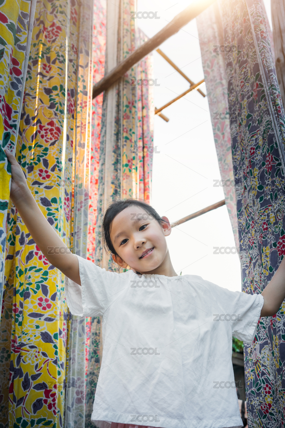 站在手工蠟染工坊晾曬場的女孩