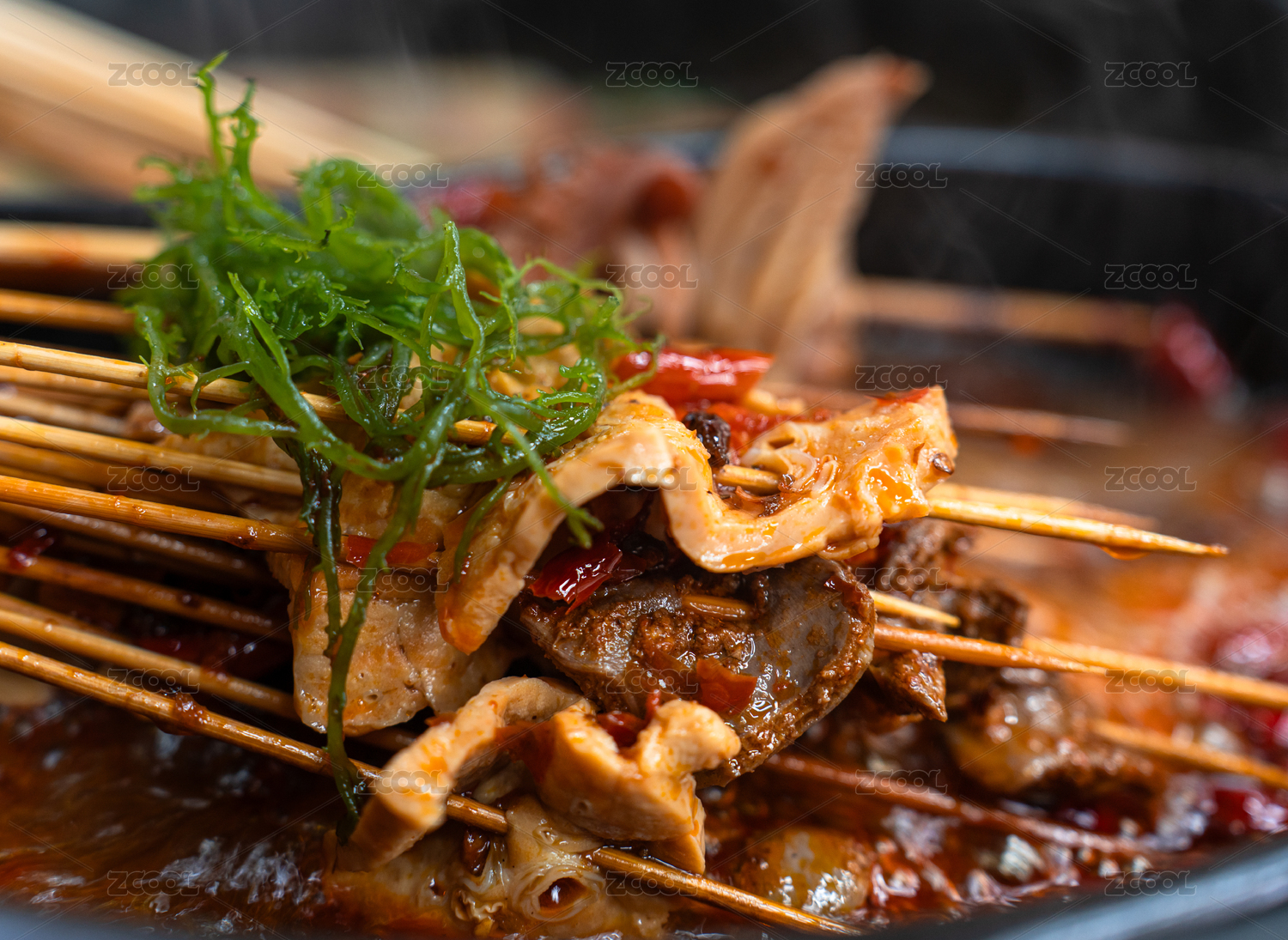 竹簽上穿的四川傳統(tǒng)美食火鍋串串香各類食材