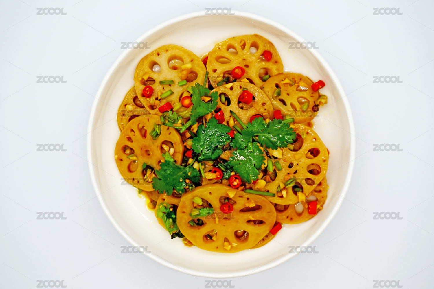 白色背景傳統(tǒng)涼拌菜涼拌藕片