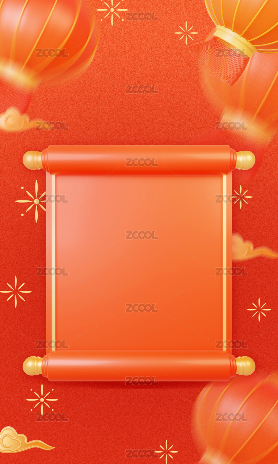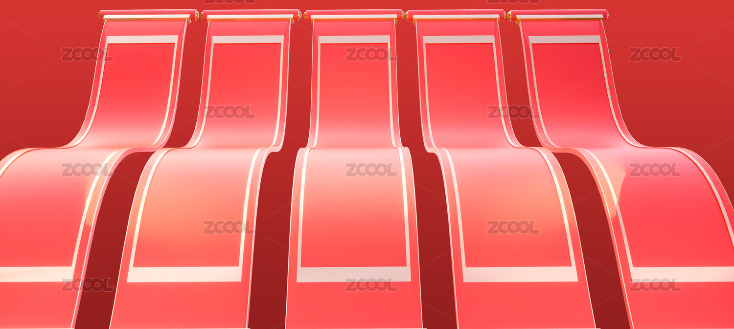 3d紅金色新中式空白卷軸背景插畫