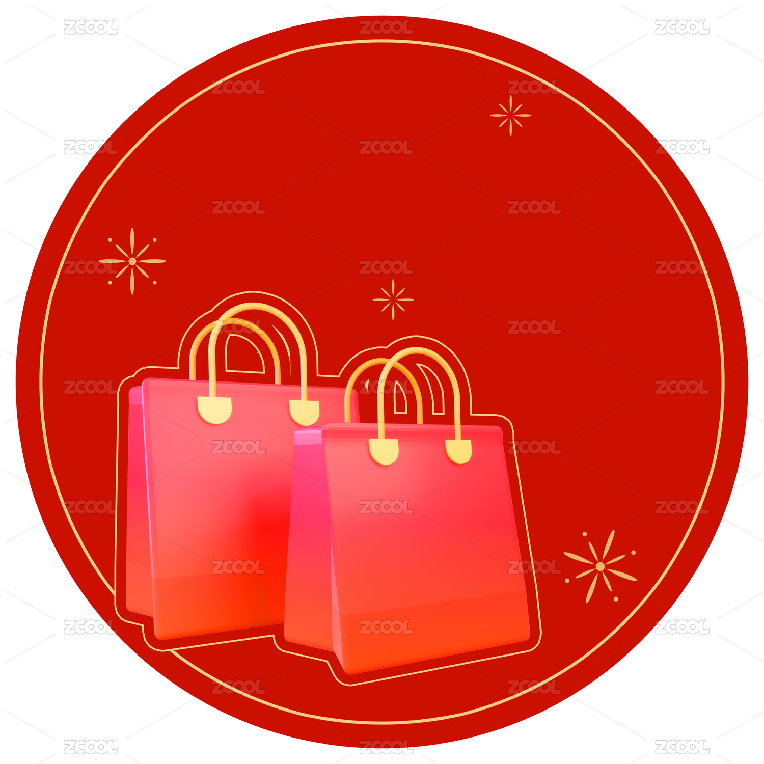 紅金色購物袋新年喜慶3d立體插畫元素