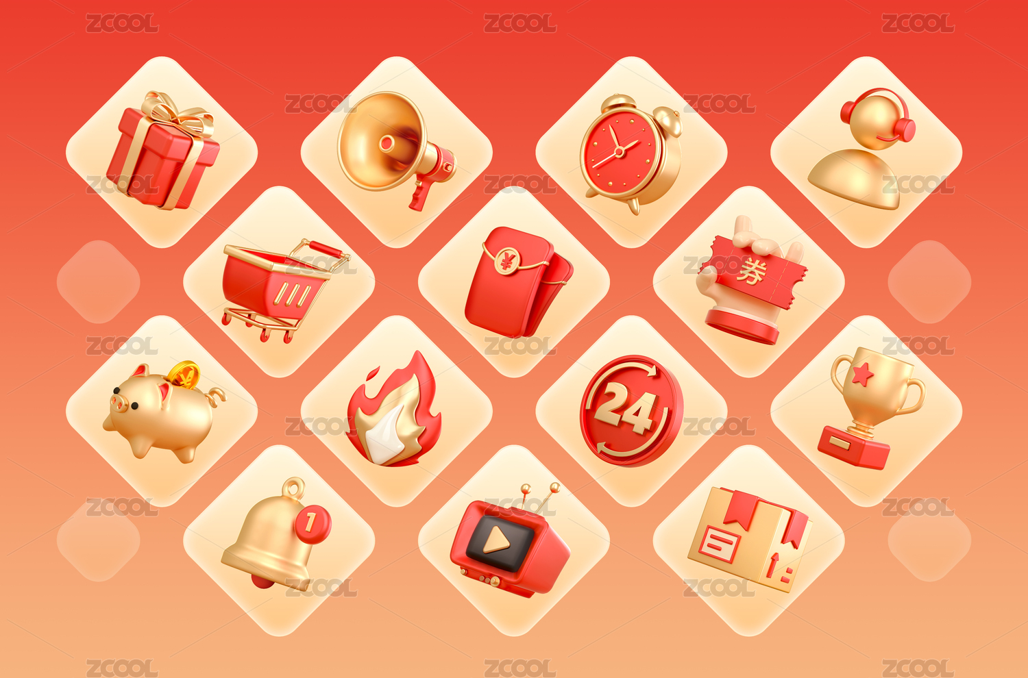紅金色電商新年節(jié)日活動(dòng)促銷元素圖標(biāo)合集