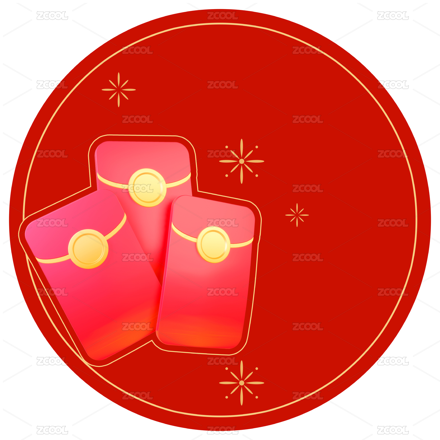 紅金色新春佳節(jié)慶典活動(dòng)3d立體文創(chuàng)圓插畫