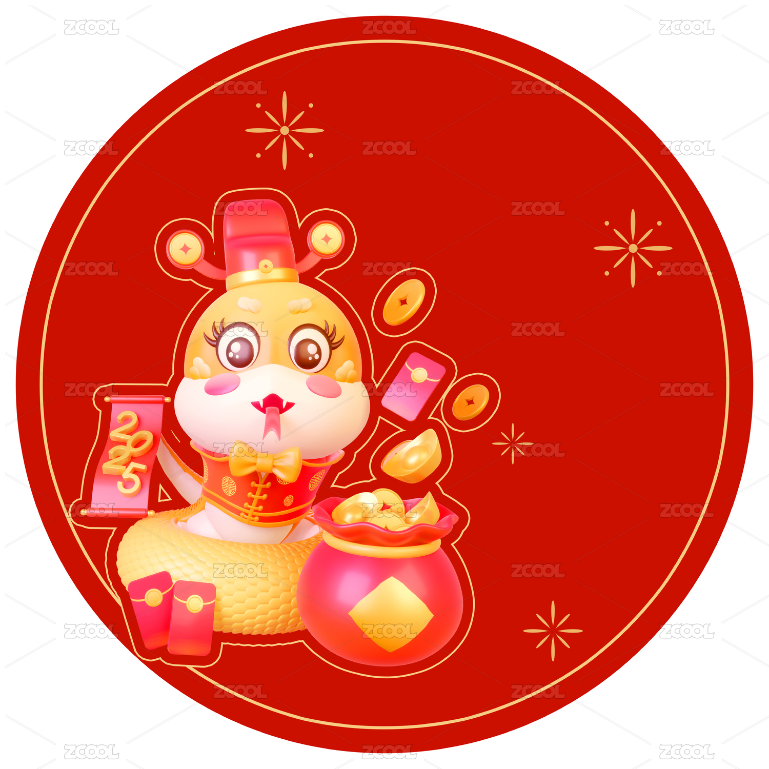 紅金色金蛇蛇年新春佳節(jié)慶典3d立體插畫