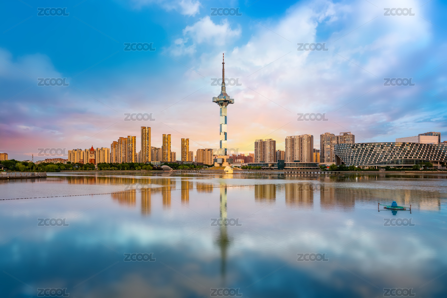 江蘇省鹽城市亭湖區(qū)地標(biāo)聚龍湖金鷹奧萊城天際線電視塔