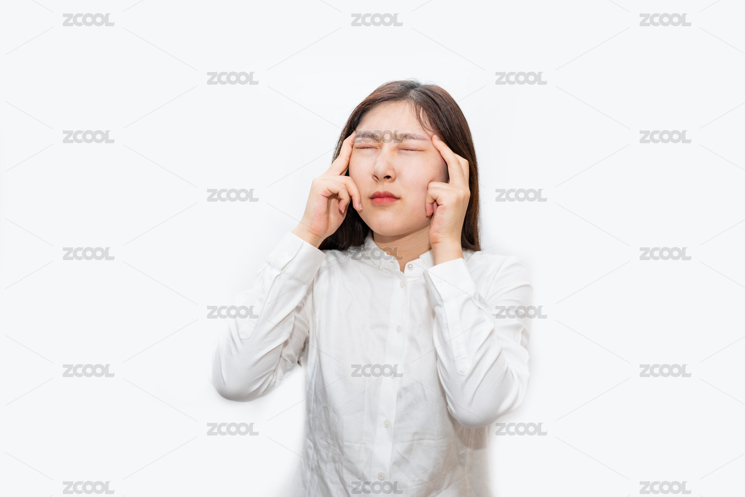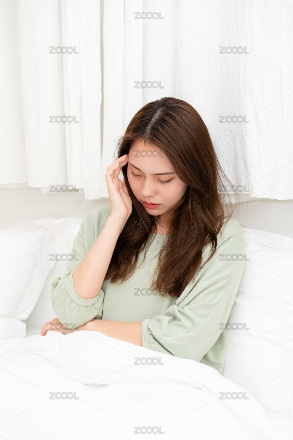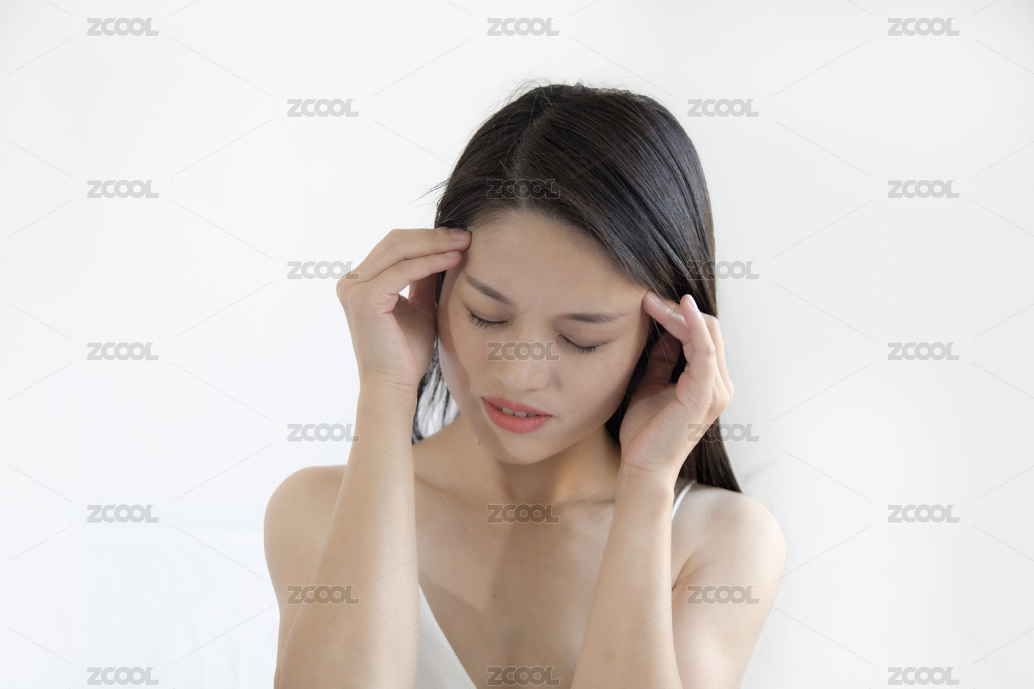 頭痛的長頭發(fā)東方女人