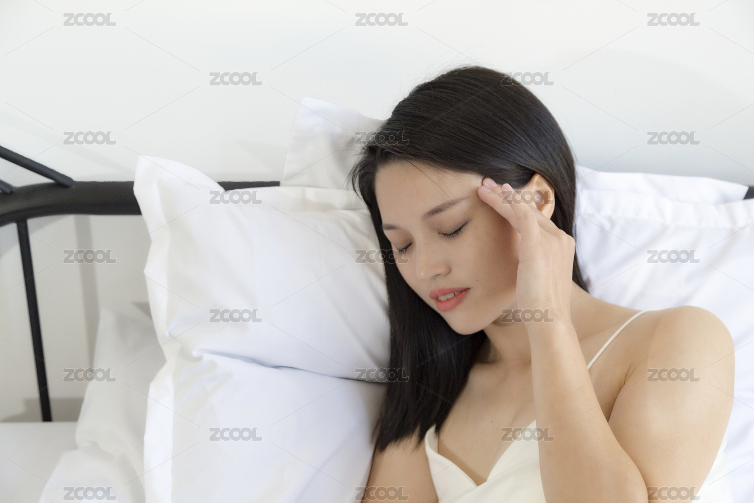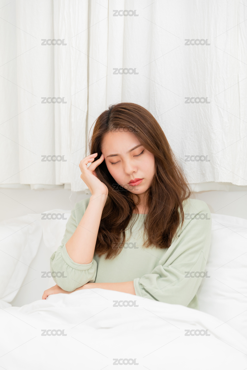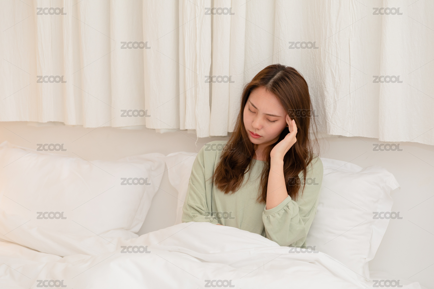 頭痛的長頭發(fā)東方女人