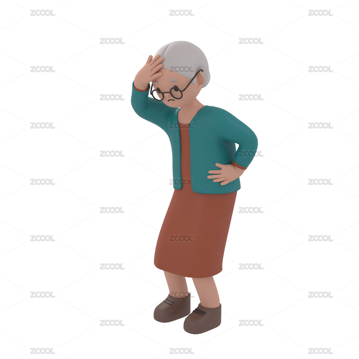 3d渲染頭痛的老太太插畫