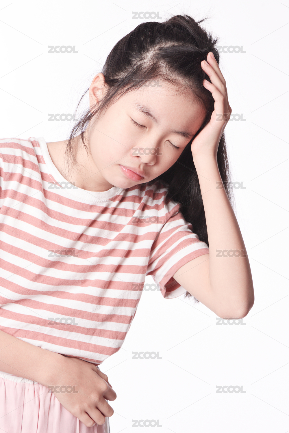 女童用手扶著頭做頭痛狀態(tài)