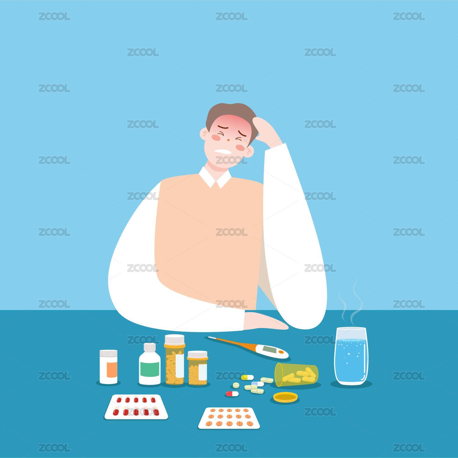 生病頭痛的青年人插畫元素