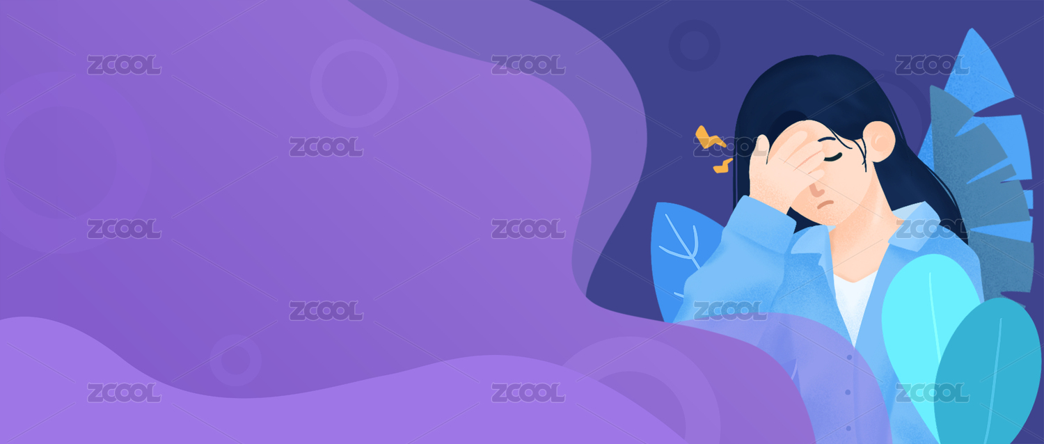 女性頭痛扶著頭插畫