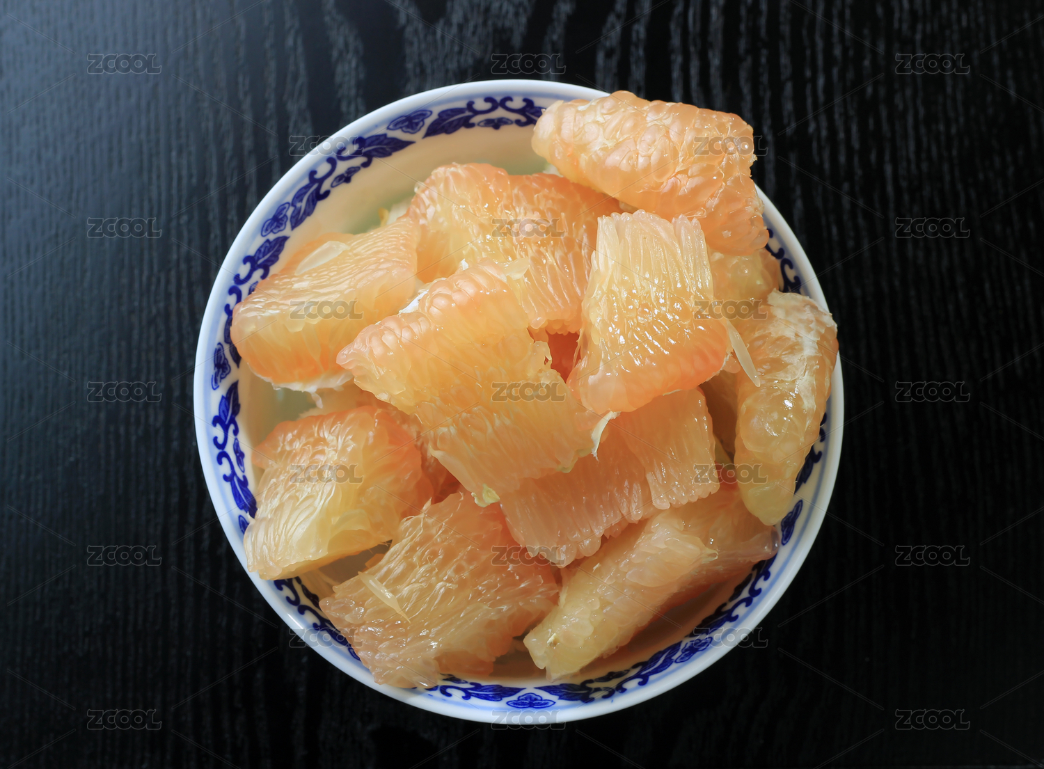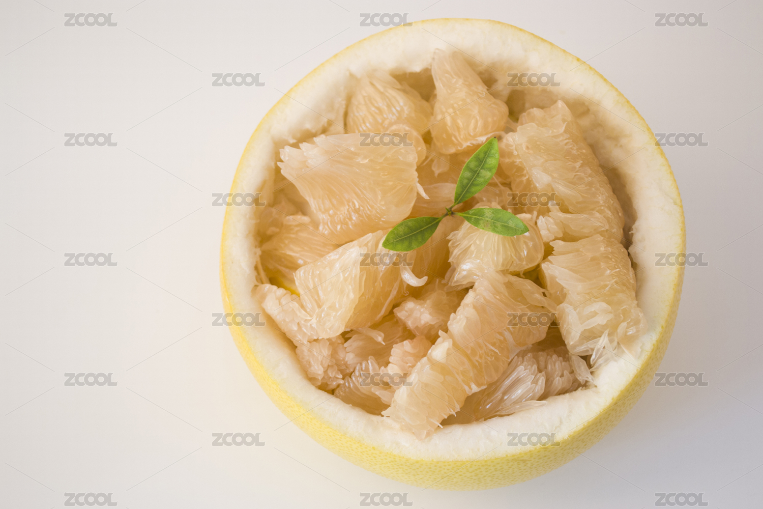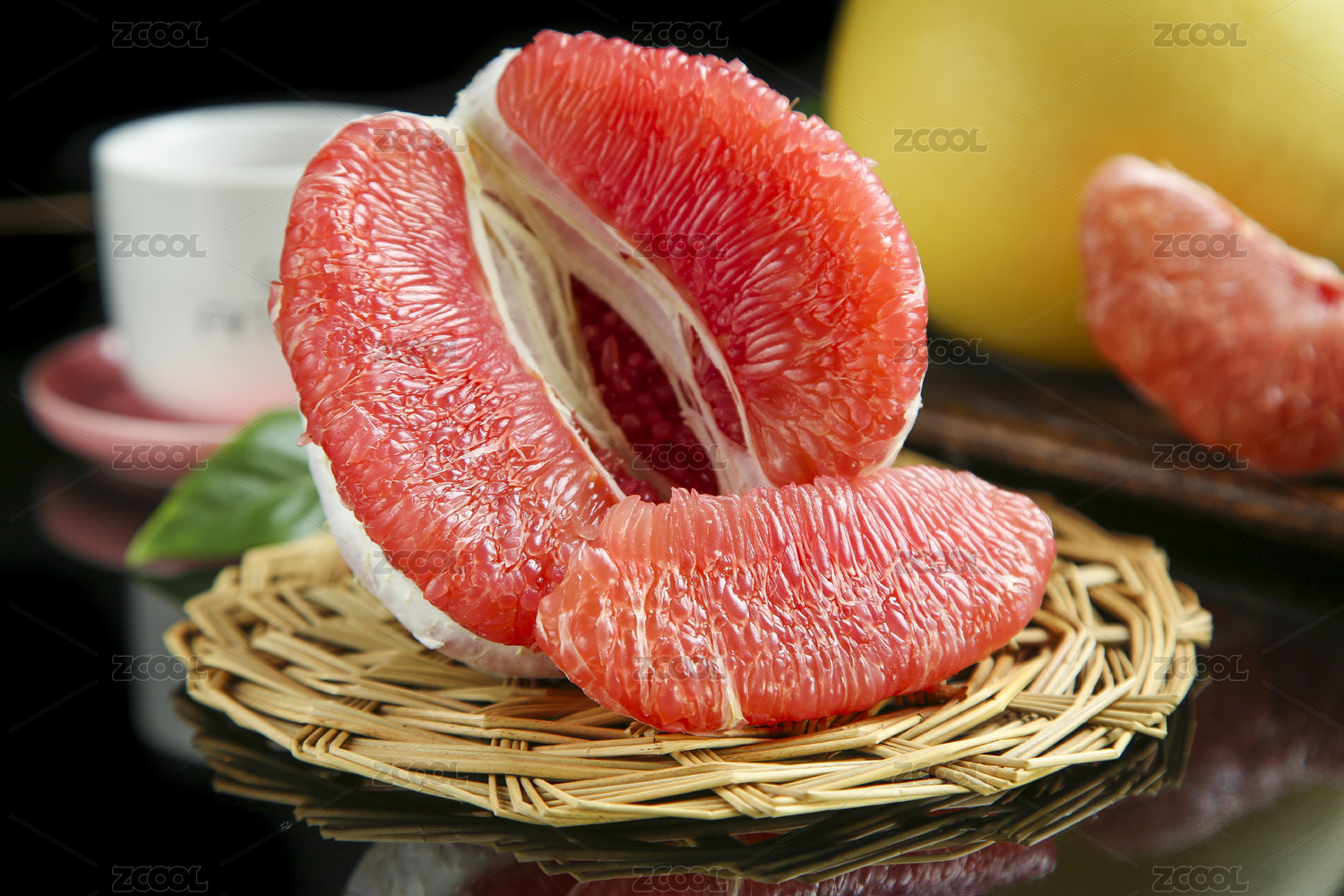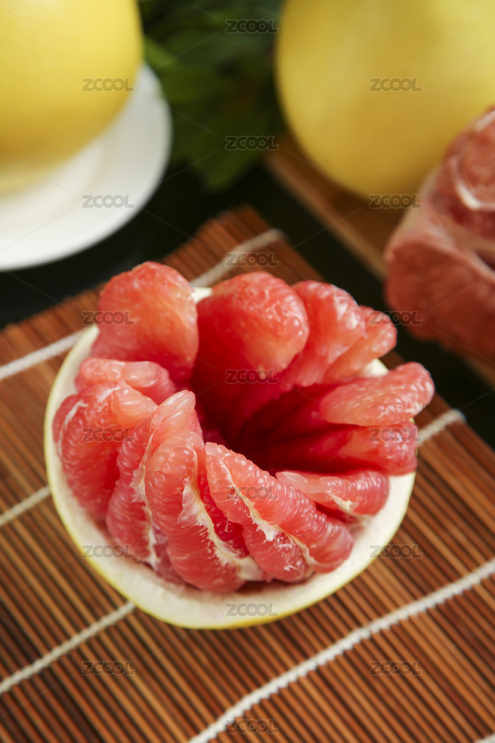 竹墊子上放著剝開的三紅蜜柚和柚子果肉