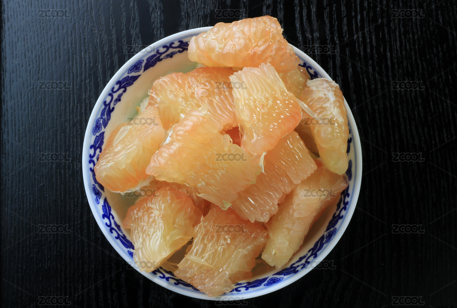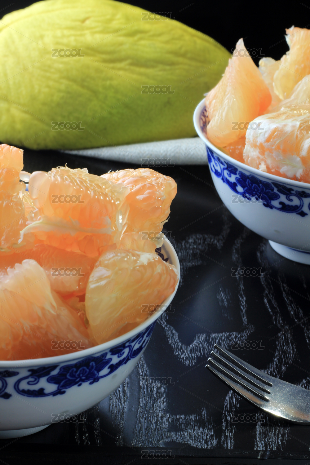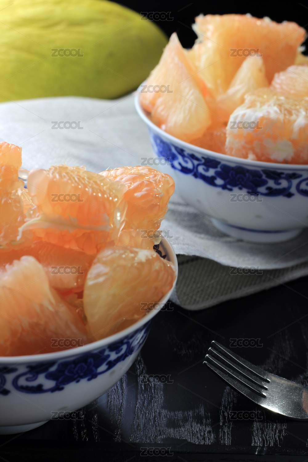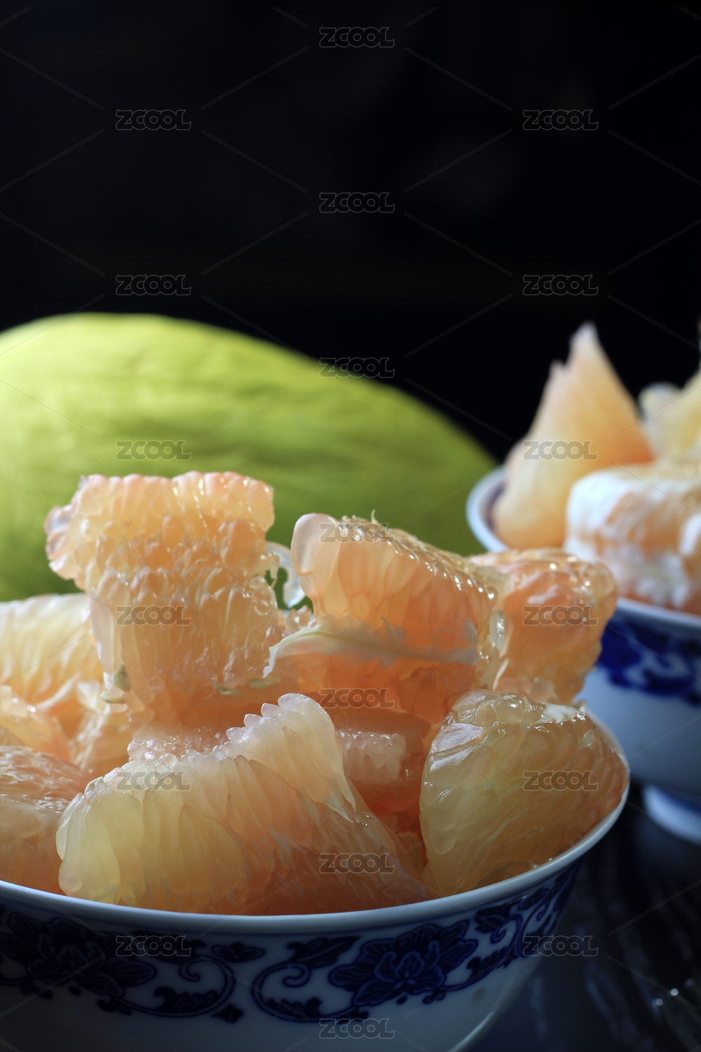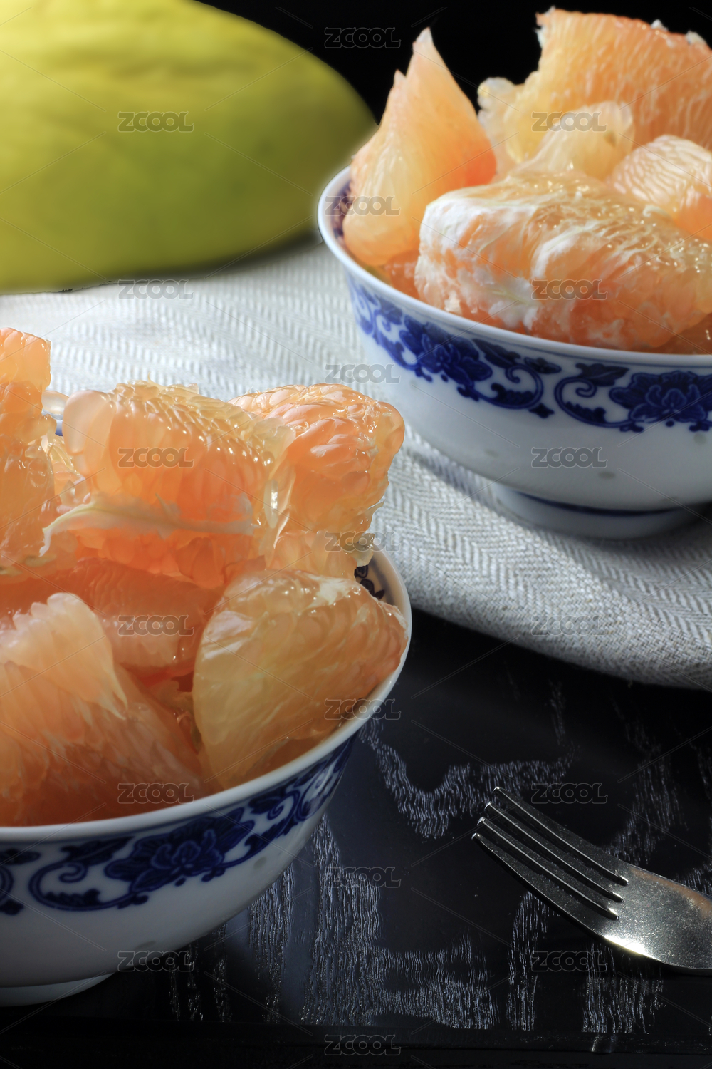 竹墊子上放著剝開的三紅蜜柚和柚子果肉